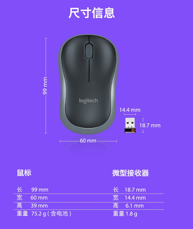 로지텍 (Logitech) M186 무선 오피스 마우스 광학 USB 휴대용 노트북 데스크탑 블랙 블루 레드