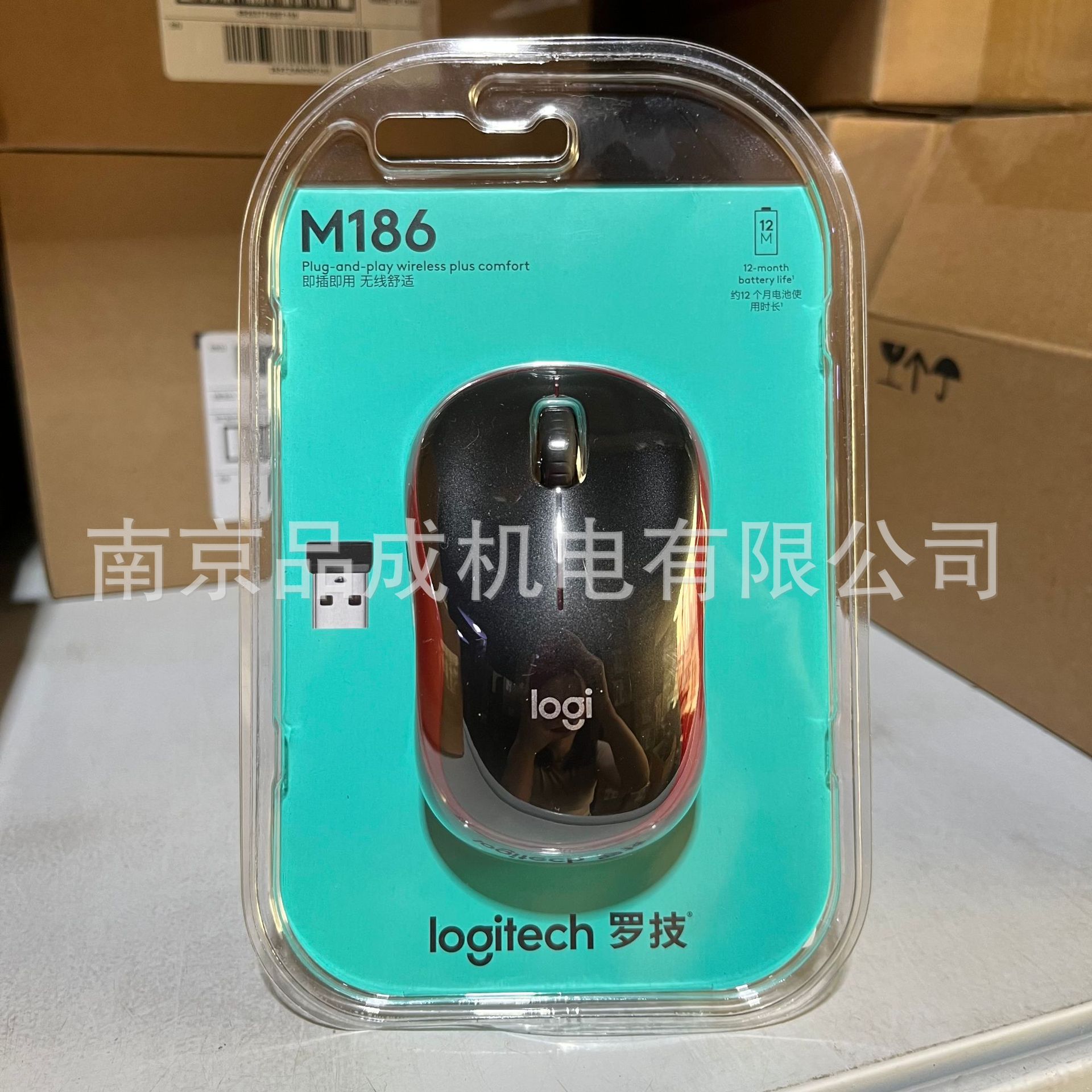 로지텍 (Logitech) M186 무선 오피스 마우스 광학 USB 휴대용 노트북 데스크탑 블랙 블루 레드스토어 가기