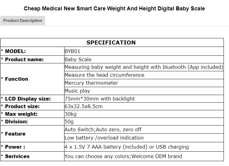 가정용 전자 저울 아기 신장과 체중 측정기 전자 저울 아기 신체검사 저울의 국경 횡단 직공급