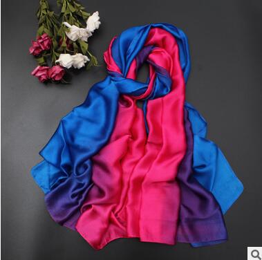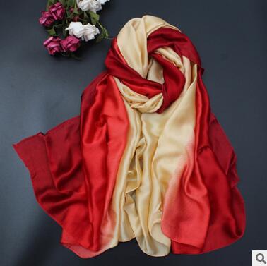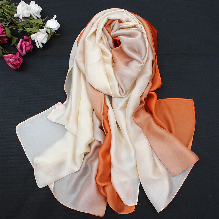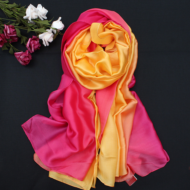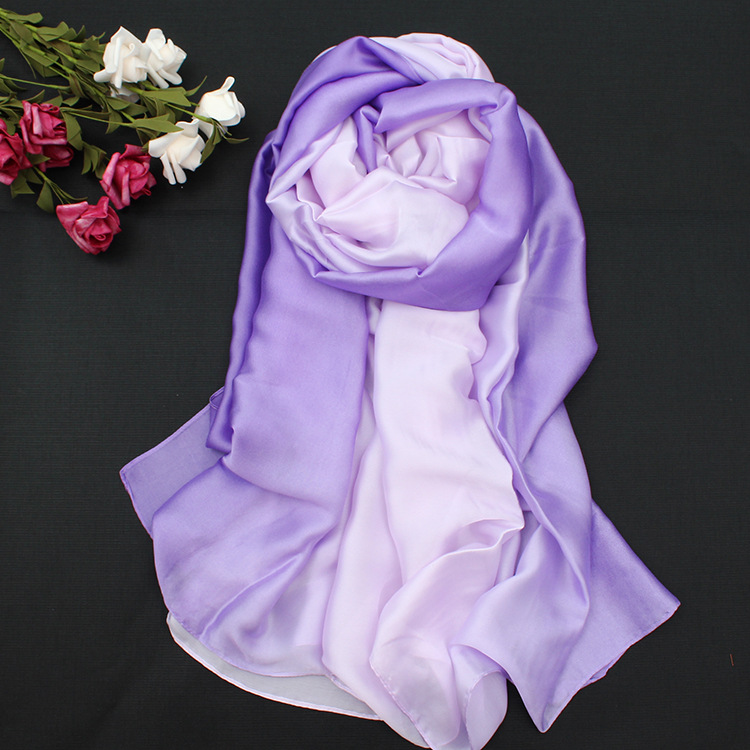 봄 축제 실크 뽕나무 실크 롱 그라데이션 실크 스카프 올매치 에어컨 자외선 차단제 스카프 여성용 숄