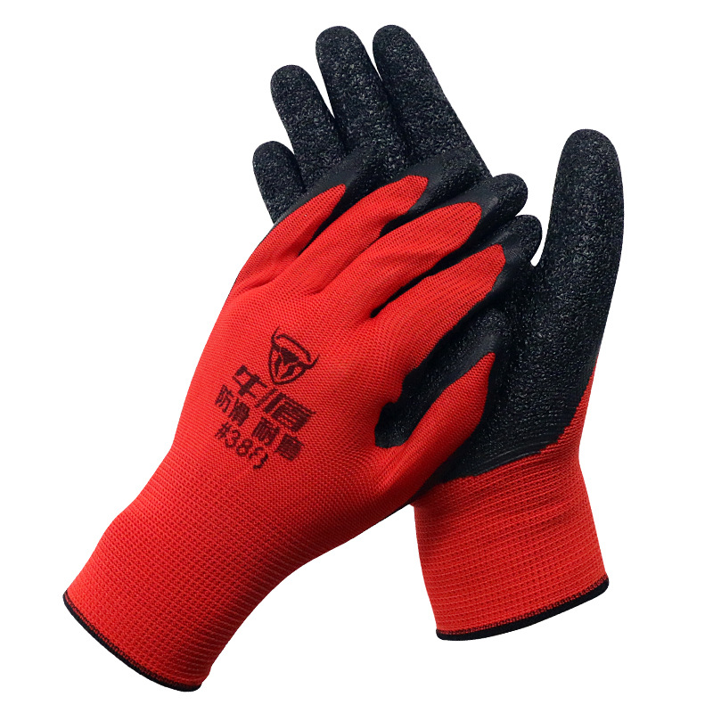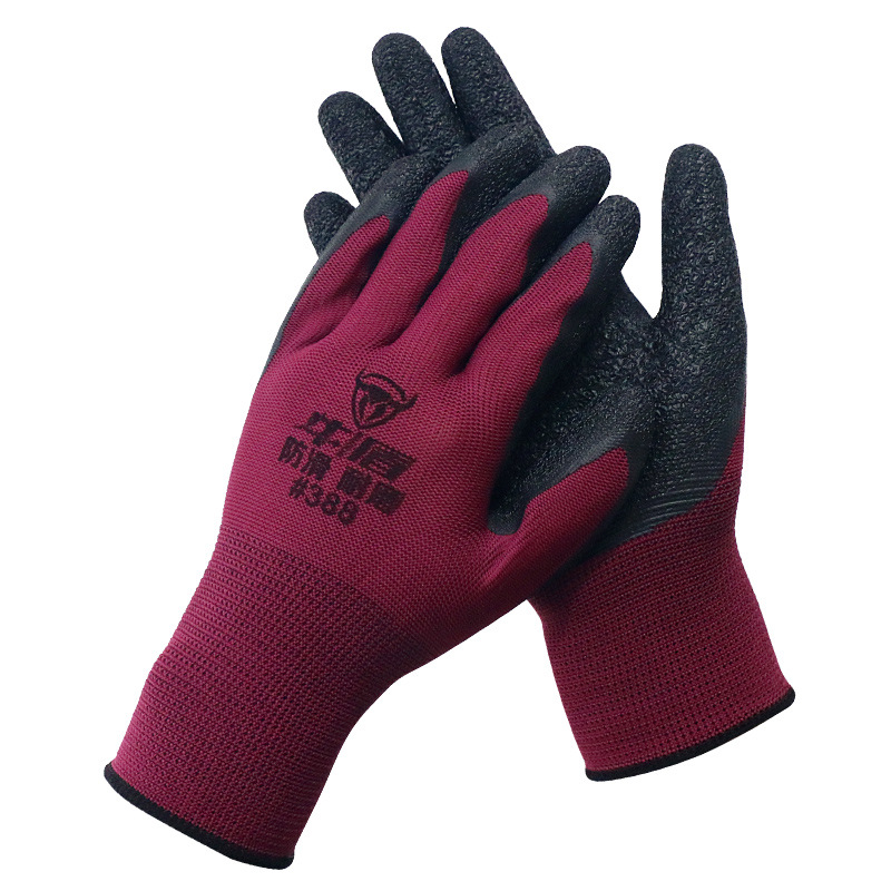 • 빨간색 나일론 검정색 비닐 주름 장갑 (Guangyi)