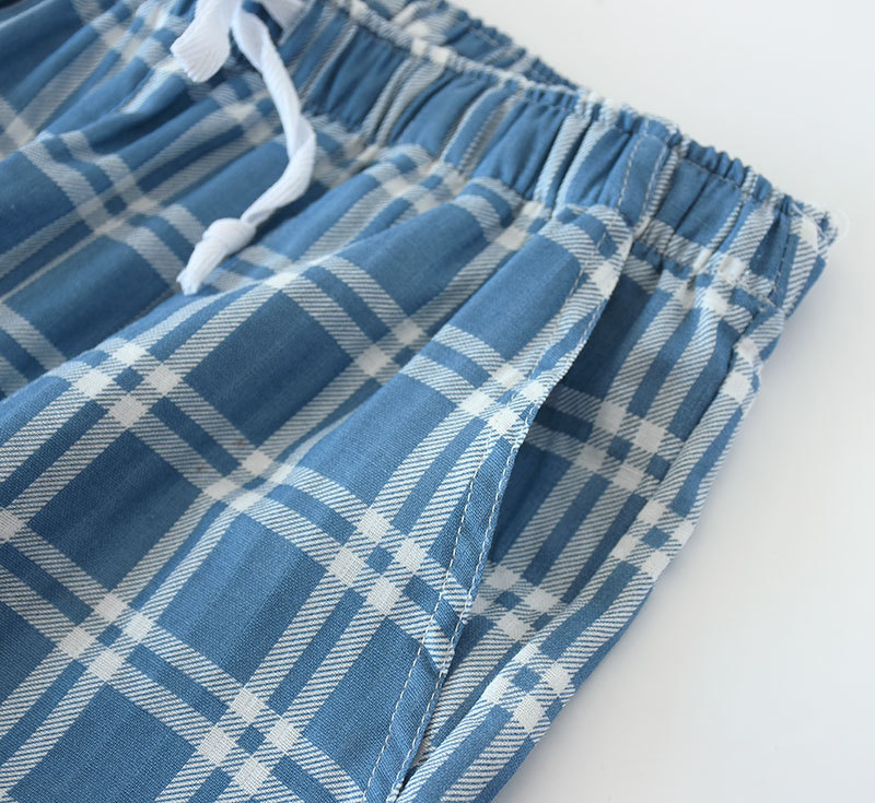 남성용 면 거즈 바지 면 격자 무늬 잠옷 바지 홈 캐주얼 에어컨 룸 느슨한 대형 바지 여름과 가을 얇은스토어 가기