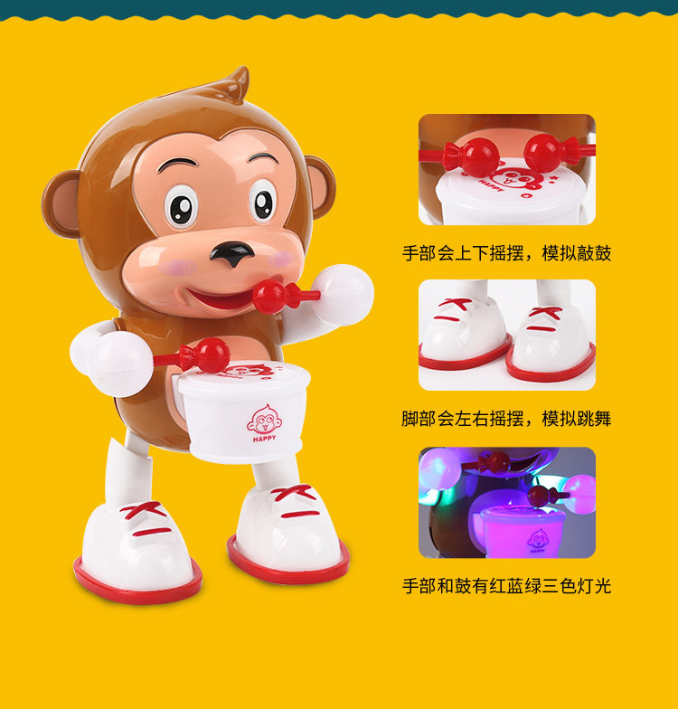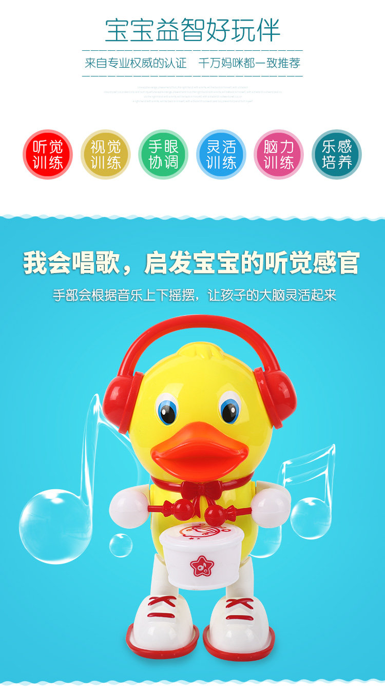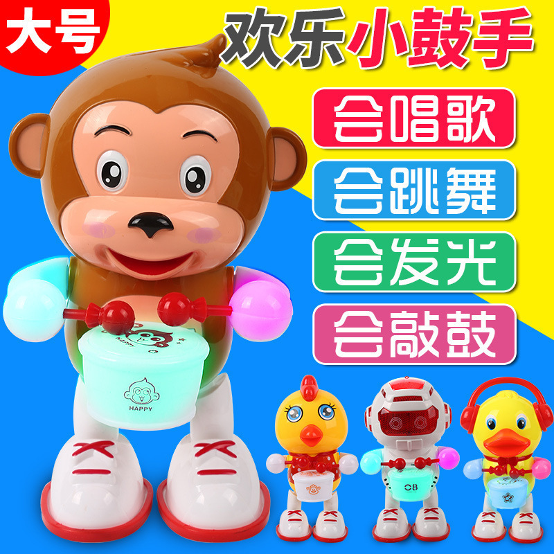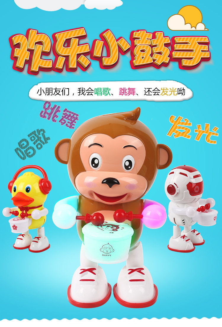행복한 작은 드러머는 노래하고 춤을 출 수 있습니다 장난감 빛나는 음악 전기 드럼 연주 팬더 아기 장난감스토어 가기