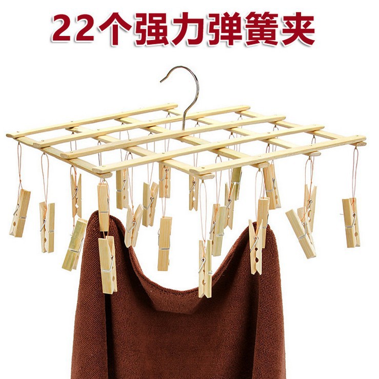 22 클립 대나무 텔레스코픽 건조대 다기능 건조 클립 대나무 바지 랙 타월 양말 다목적 의류 핀 접이식 랙