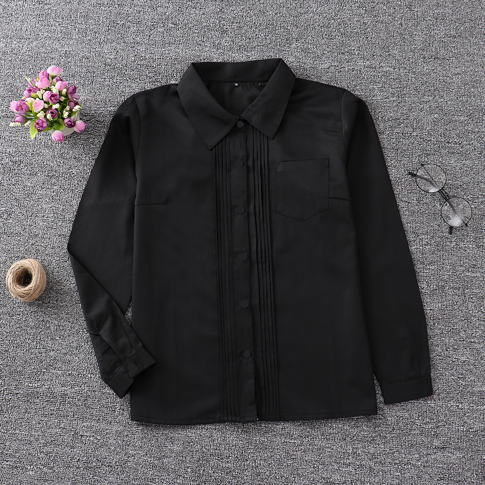 New JK 유니폼 뾰족한 칼라 앞 오르간 플리츠 셔츠 긴팔 스퀘어 칼라 셔츠 학생 셔츠