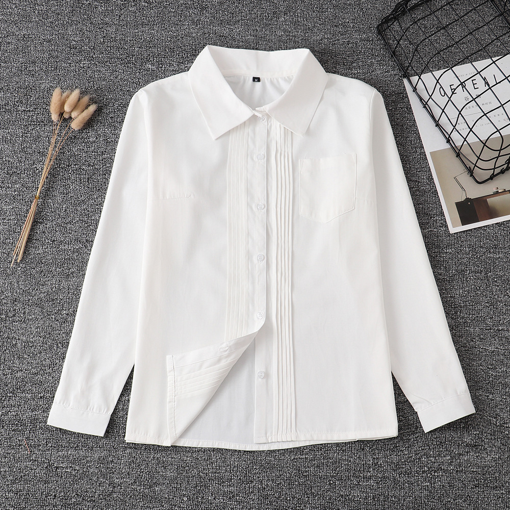 New JK 유니폼 뾰족한 칼라 앞 오르간 플리츠 셔츠 긴팔 스퀘어 칼라 셔츠 학생 셔츠스토어 가기