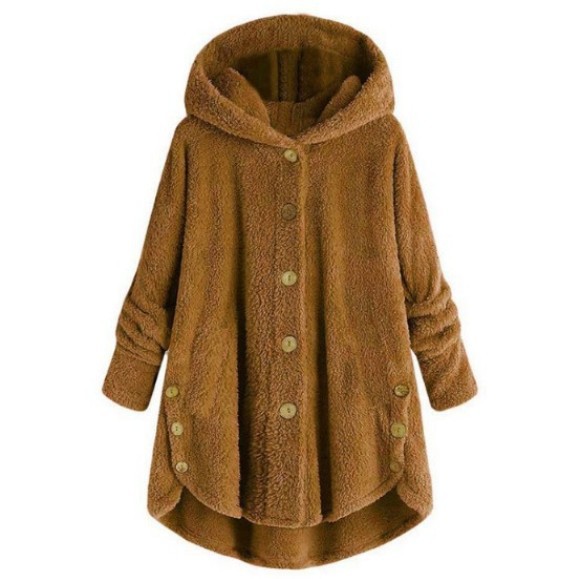 아마존 이베이 2025 겨울 신상 패션 여성복 유럽 및 미국 스타일 버튼 장식 플러시 탑 불규칙한 트렌디 브랜드 단색 재킷스토어 가기