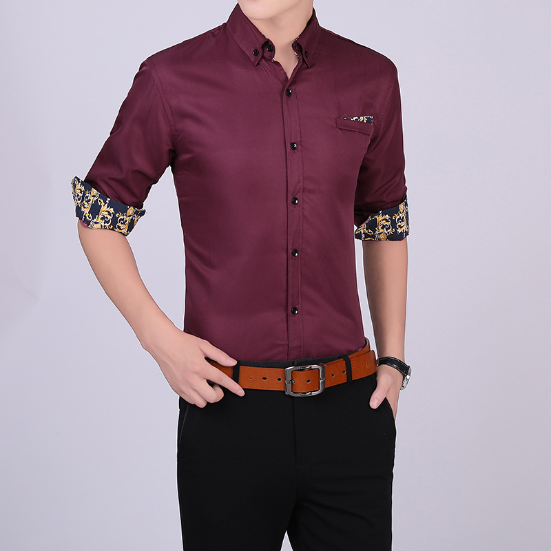• 황금 꽃 긴 셔츠 버건디 긴 소매