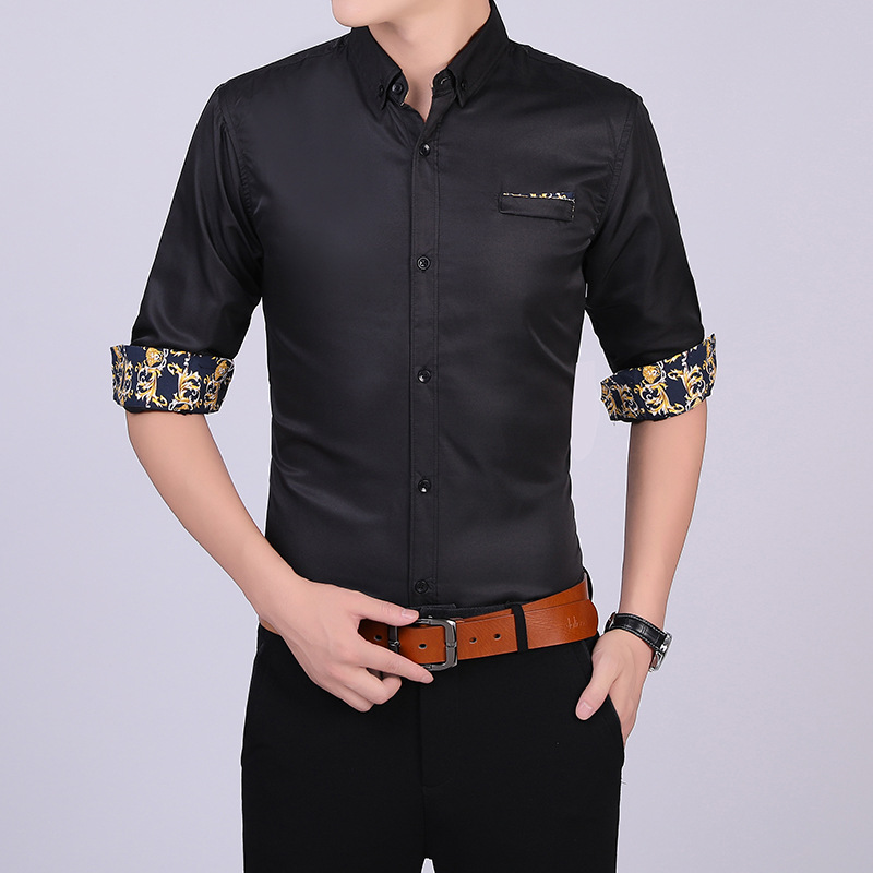 • 골든 플라워 롱 셔츠 블랙 롱 슬리브