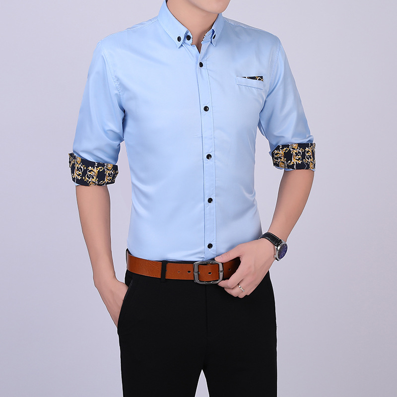 • 황금 꽃 긴 셔츠 라이트 블루 긴 소매