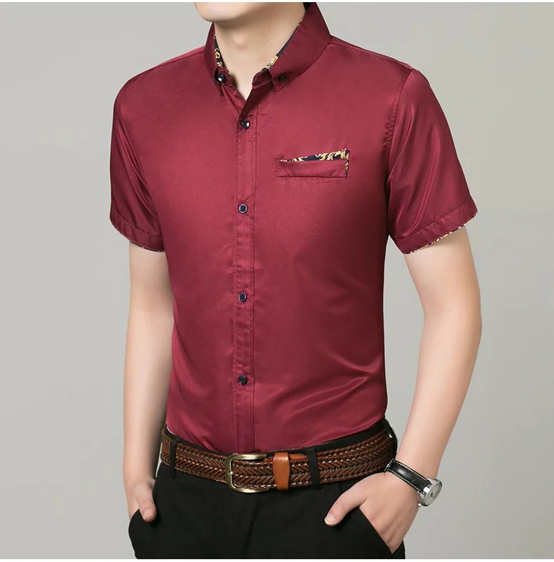 • 황금 꽃 셔츠 버건디 짧은 소매
