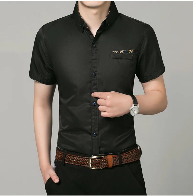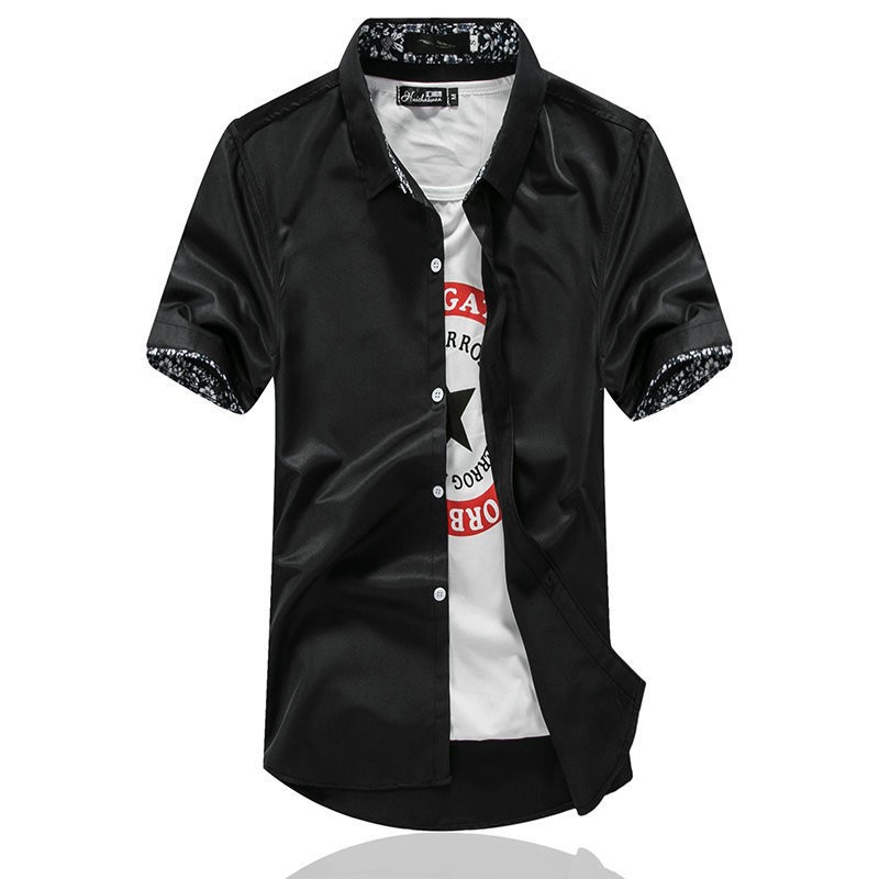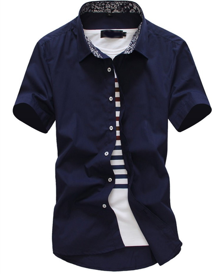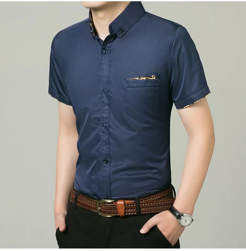 • 황금 꽃 셔츠 다크 블루 짧은 소매