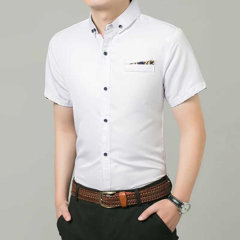 • 황금 꽃 셔츠 흰색 짧은 소매