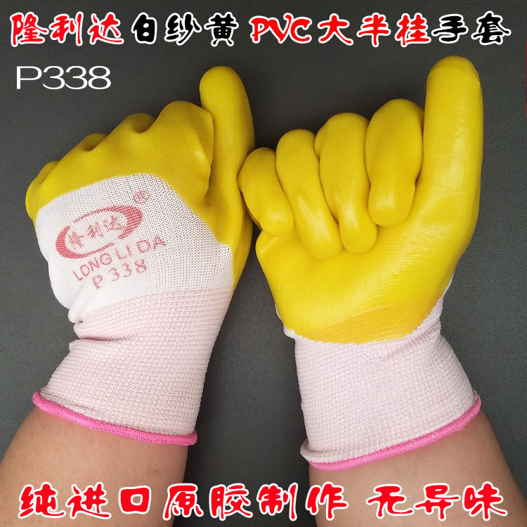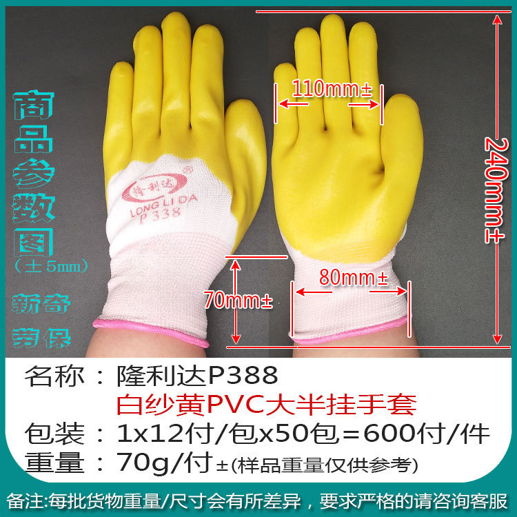 【商品名称】:隆利达P338白纱黄pvc大半挂手套