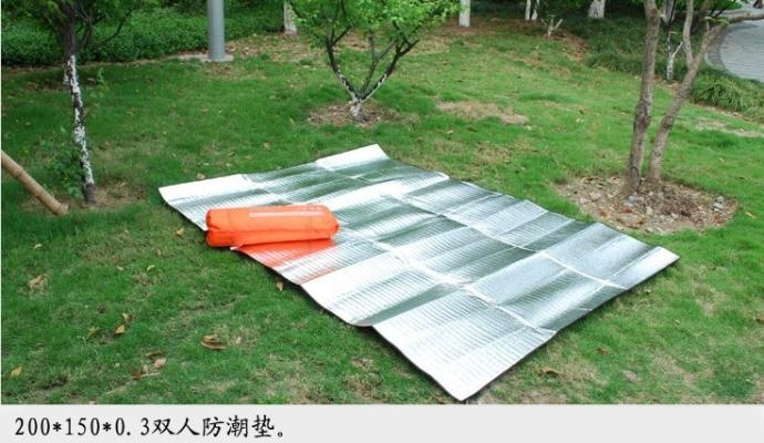 「产品特点」双面覆铝膜,中间一层珍珠棉。具有防潮、耐磨等特点,同时有一定的厚度,适合帐篷底、野餐、露营等使用。高弹性黑色皮筋包扎,带拎袋(拎带颜色随机)。材质、有很好的防潮功能。是帐篷防潮、公园休息、钓鱼的好帮手!