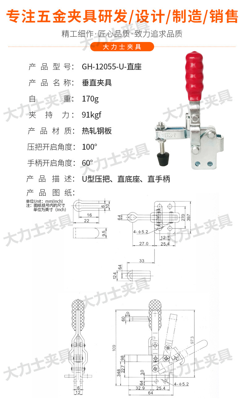 헤라클레스 퀵 클램프 GH-12055-U-WDC 수직 클램프 고정 클램프 퀵 클램프