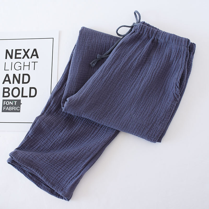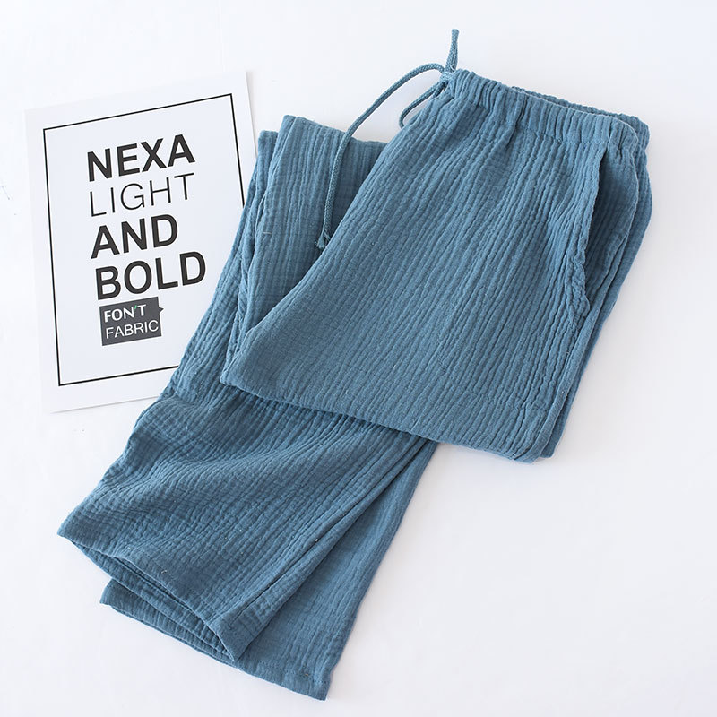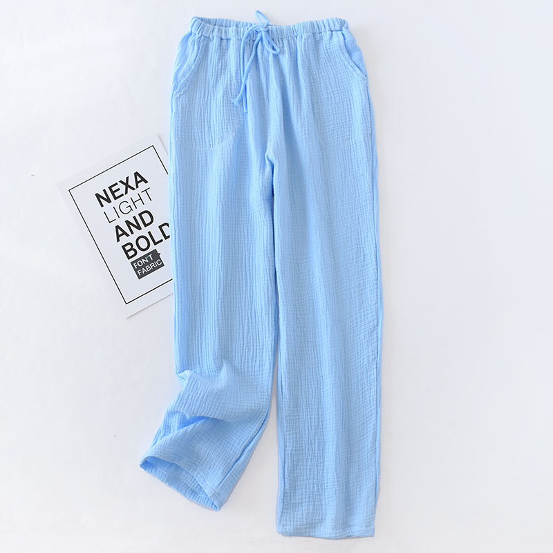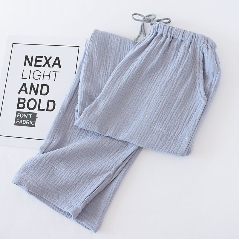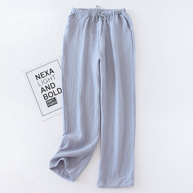 새 봄, 여름, 가을 남성과 여성의면 바지 애호가 크레이프 느슨한 컷 홈 바지 머리카락 세대