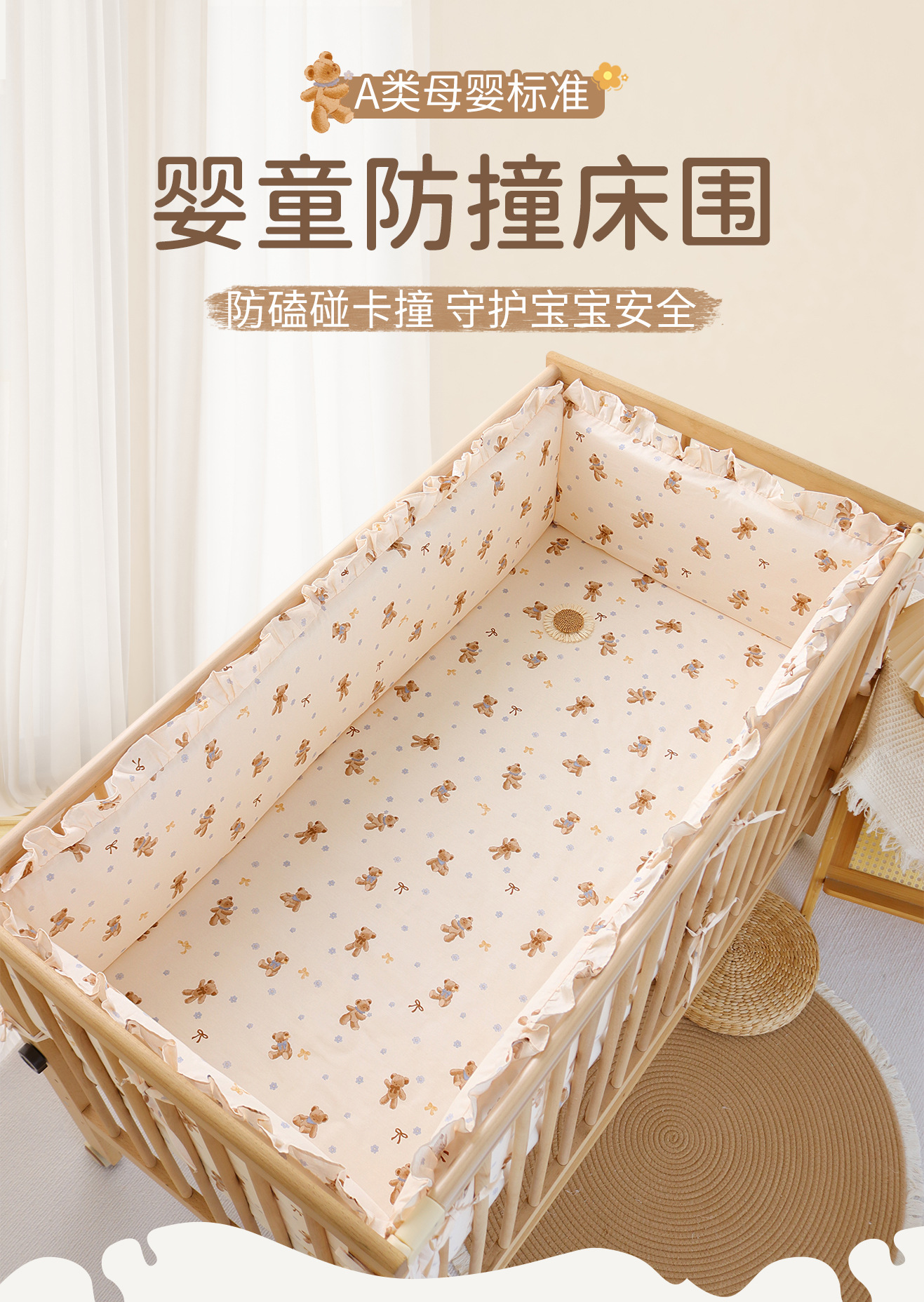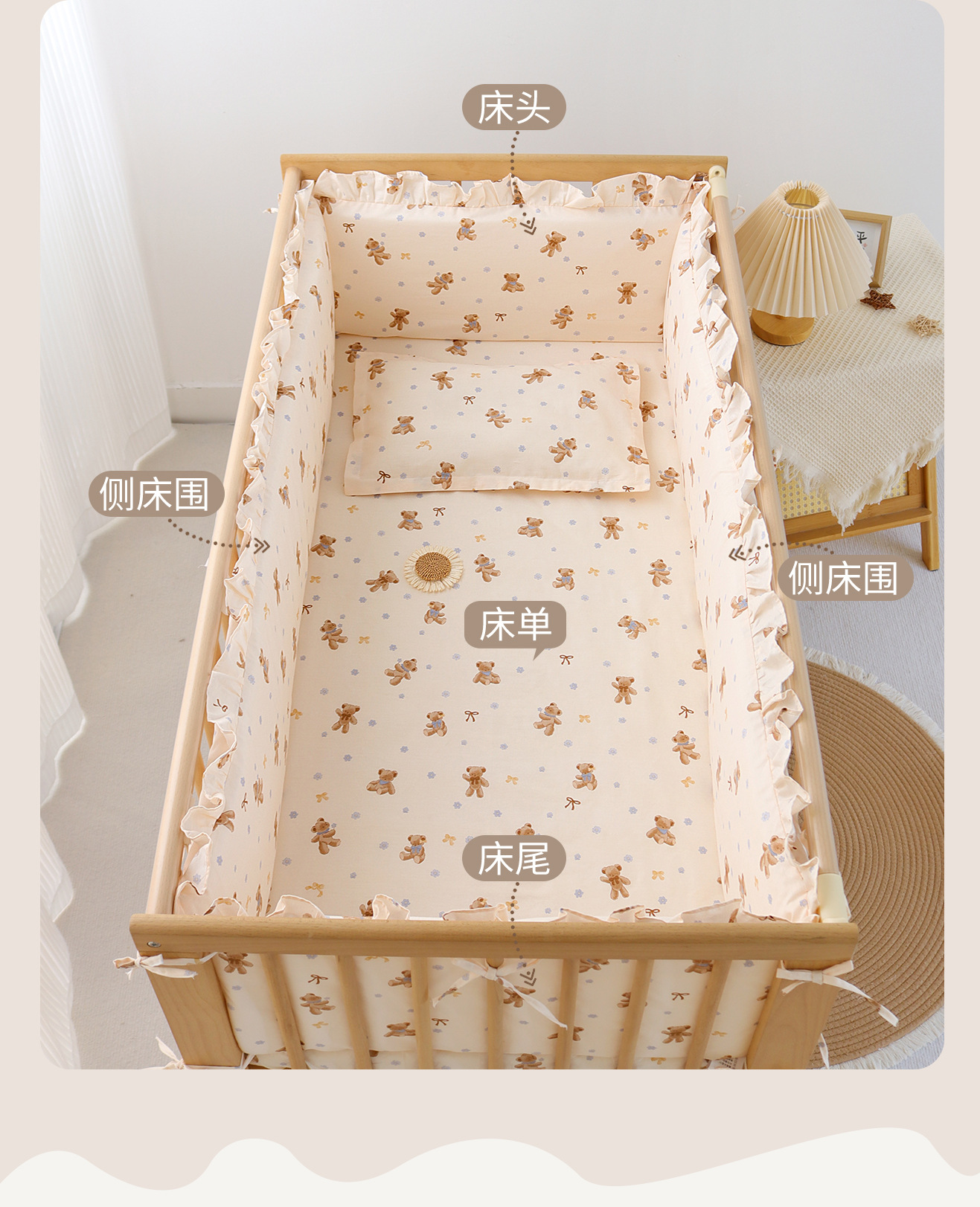 아기 침대 5 종 세트 어린이 이불 아기 침구 이동식 및 빨 충돌 방지 배리어 소프트 백스토어 가기