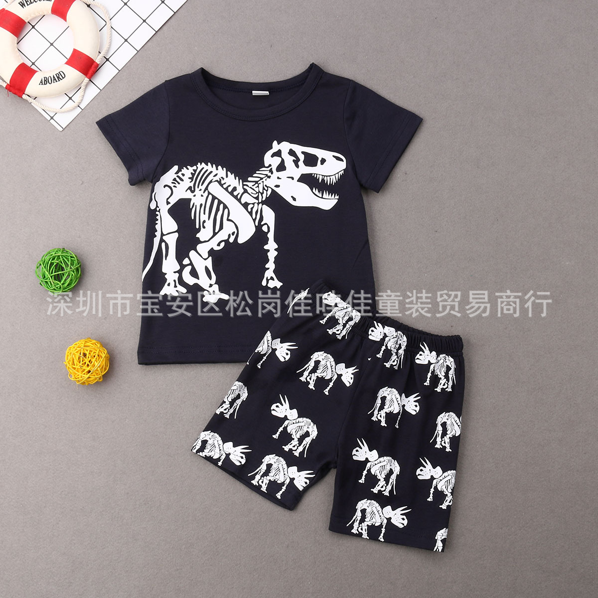 Baby2-7Y 반팔 어린이 잠옷 에어컨 세트 여름 가정복 공룡 프린트 캐주얼 투피스 세트