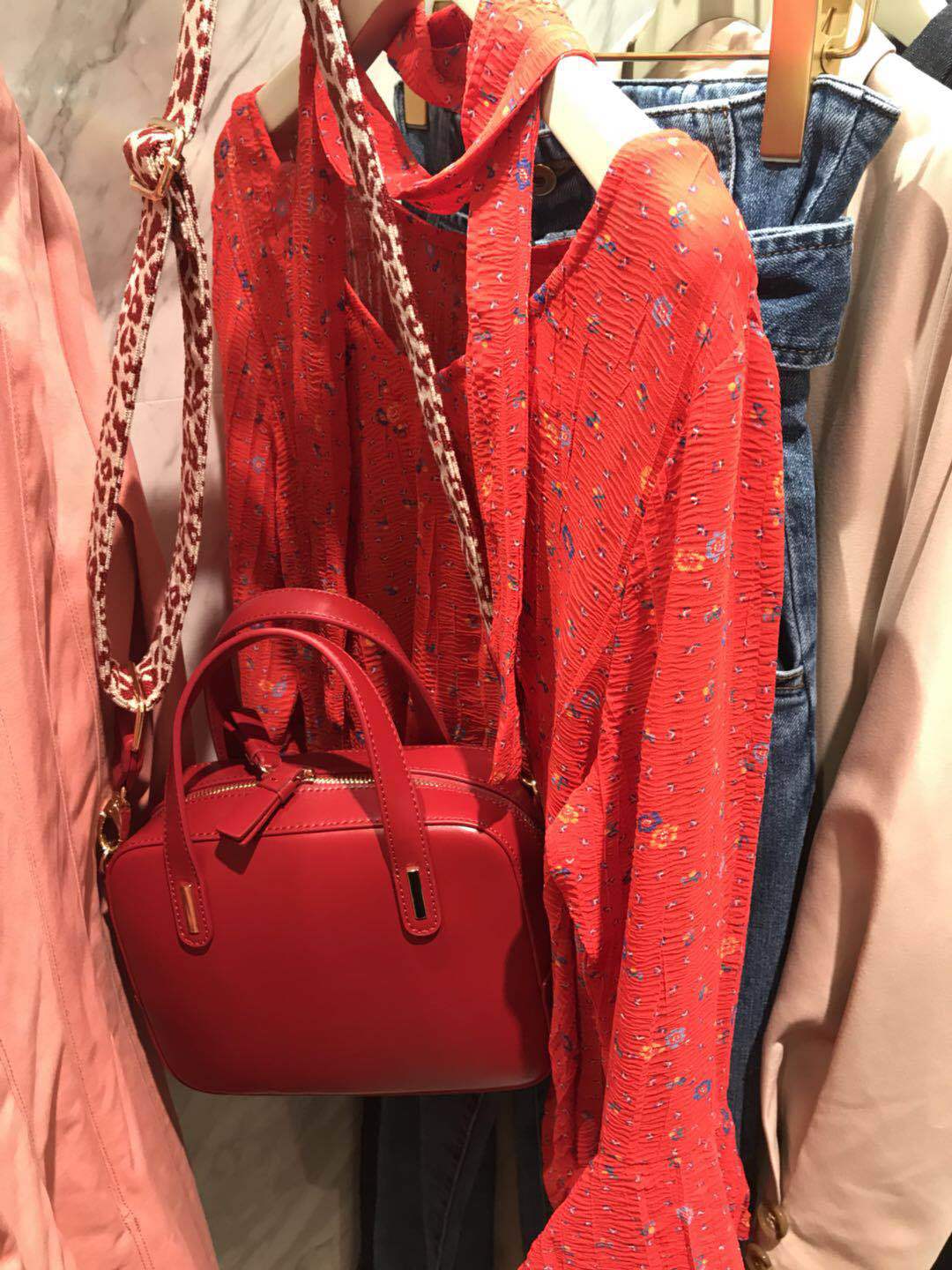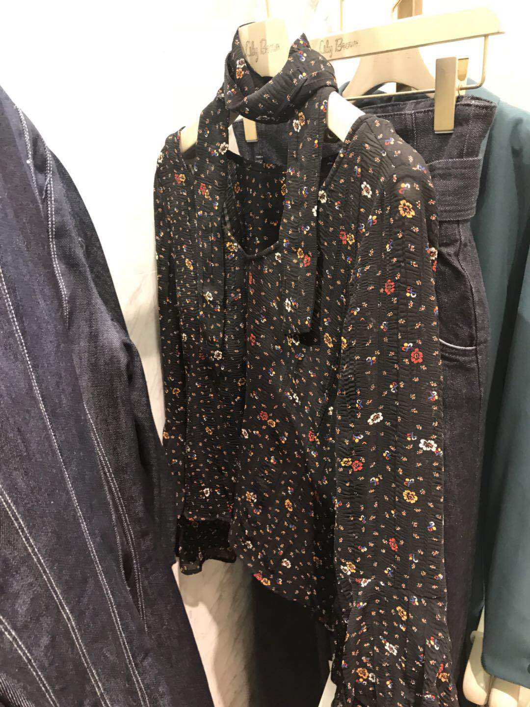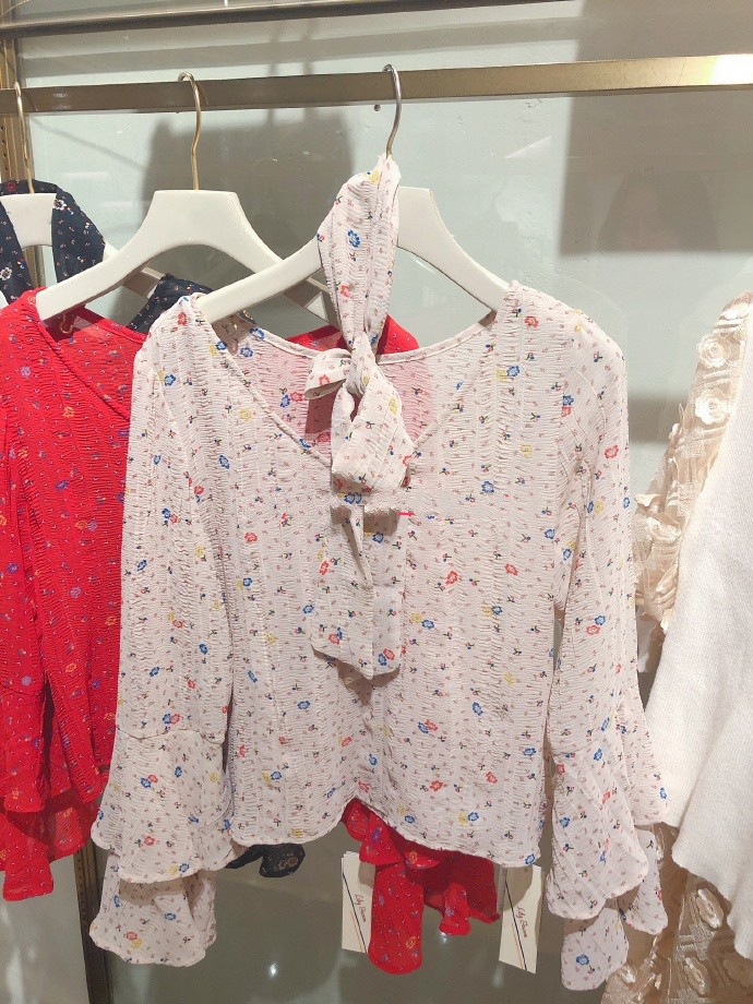 2019LB家春款日系甜美丝带薄款宽松喇叭袖碎花雪纺衬衫上衣