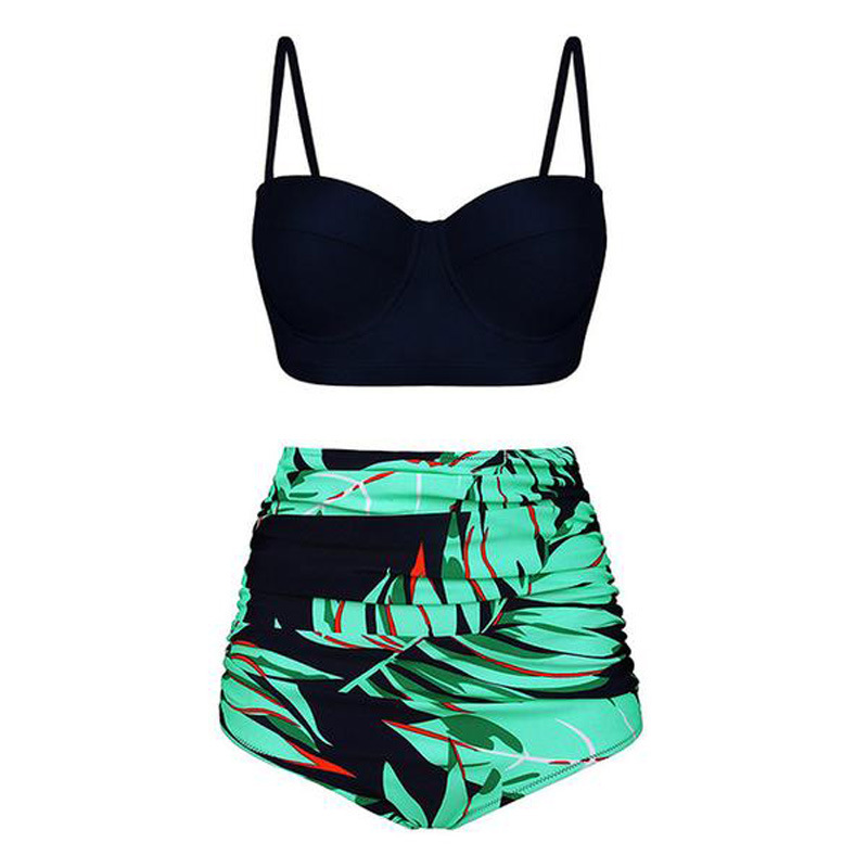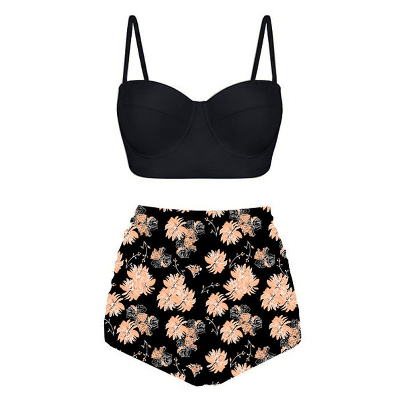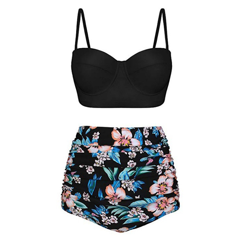 2021新款泳装多色性感纯色印花高腰分体泳衣bikin比基尼 欧美泳装 RMB:26