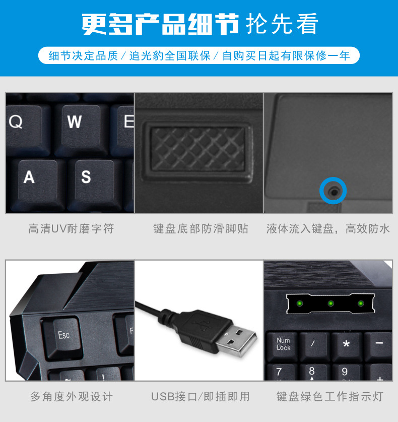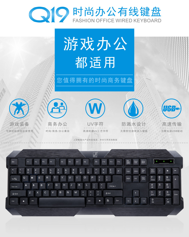가격 이점 Chasing Light Leopard Q19 유선 USB 컴퓨터 게임 방수 단일 키보드 제조업체 핫 판매 공장 프로모션스토어 가기