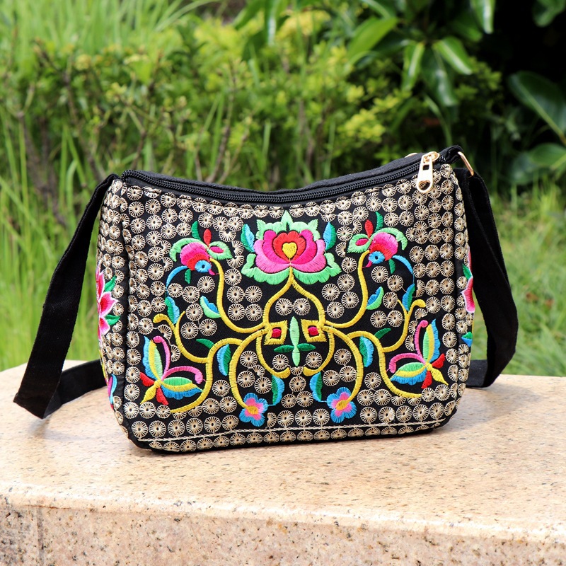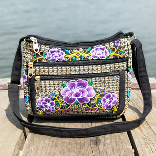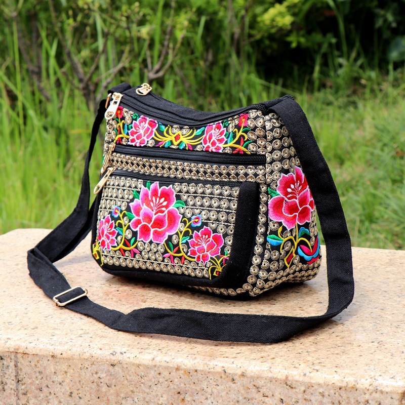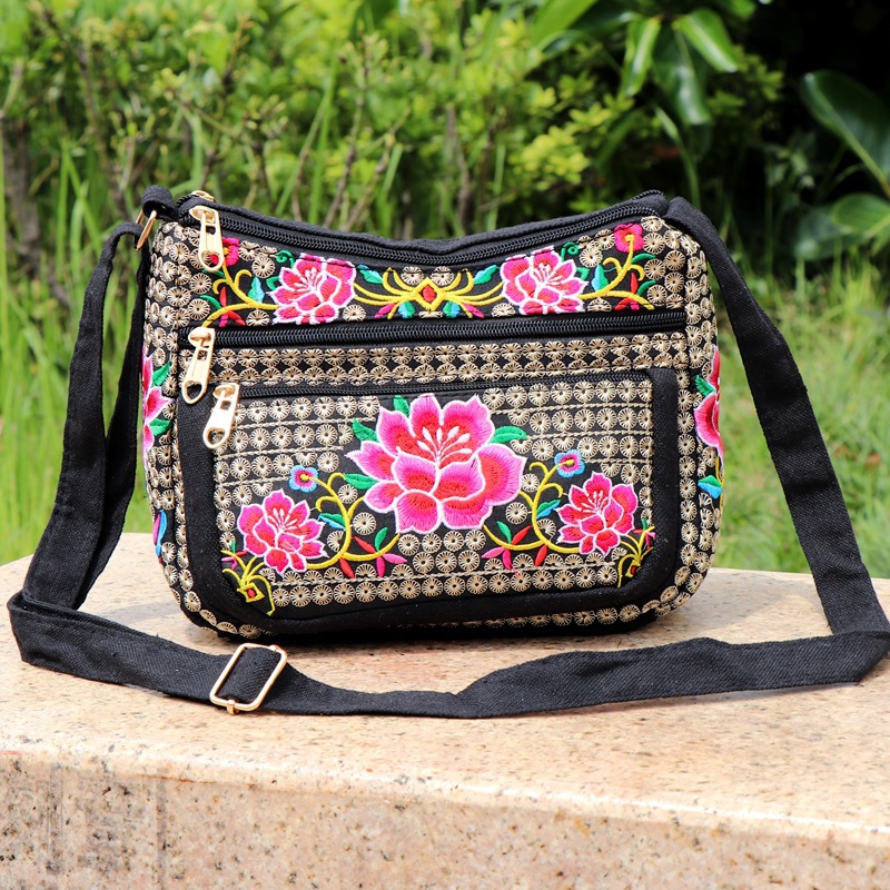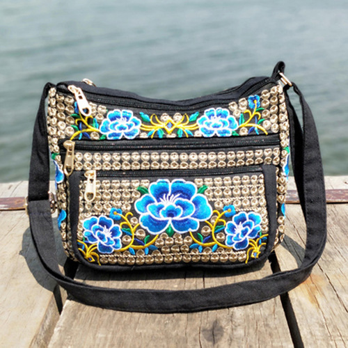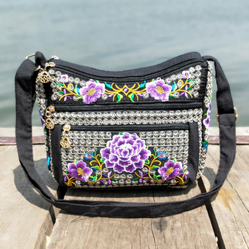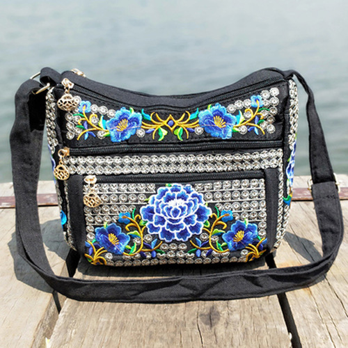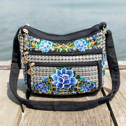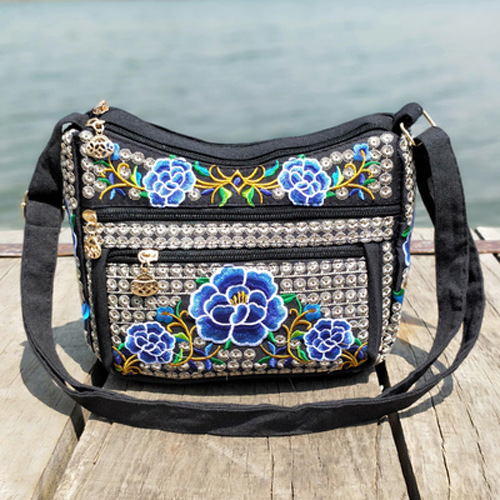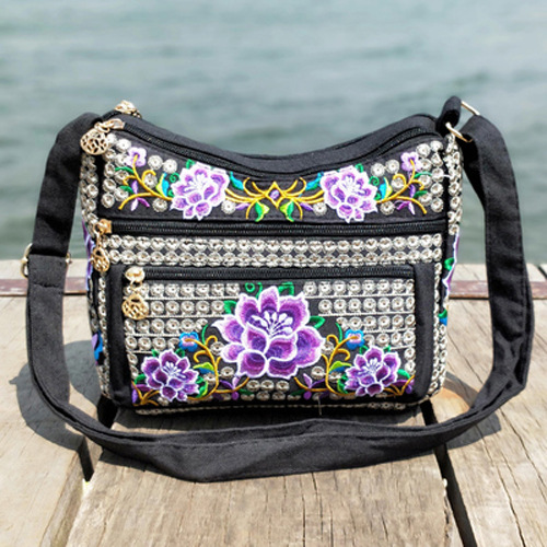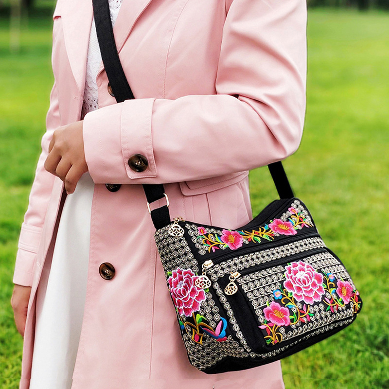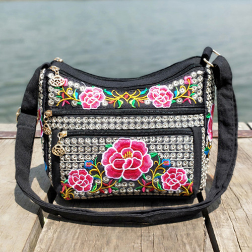 공장 직판 2025년 신상 중노년 여성 가방, 민족풍 자수 가방, 자수 캔버스 여성 숄더백스토어 가기