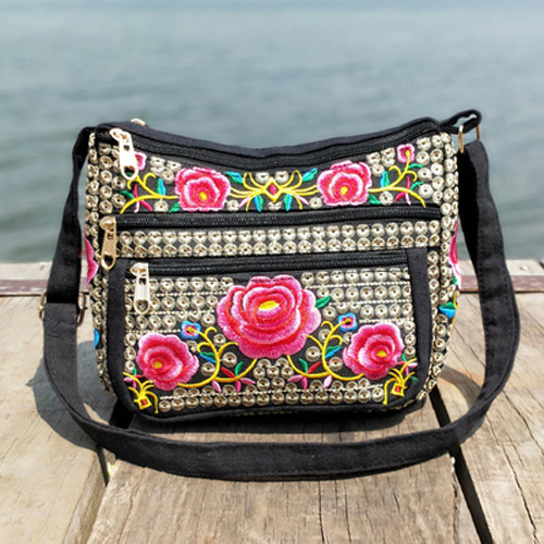 공장 직판 2025년 신상 중노년 여성 가방, 민족풍 자수 가방, 자수 캔버스 여성 숄더백