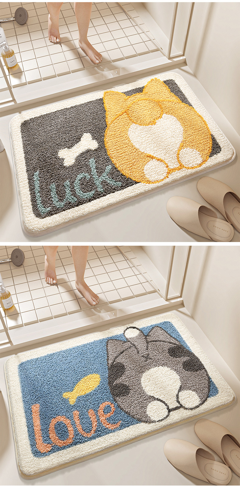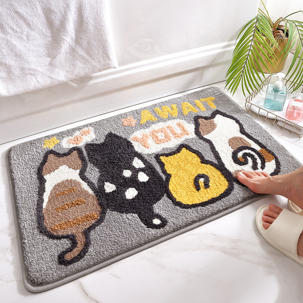 다장 만화 동물 잠금 카펫 바닥 매트 가정용 화장실 문 욕실 미끄럼 방지 매트 흡수성 발 매트스토어 가기
