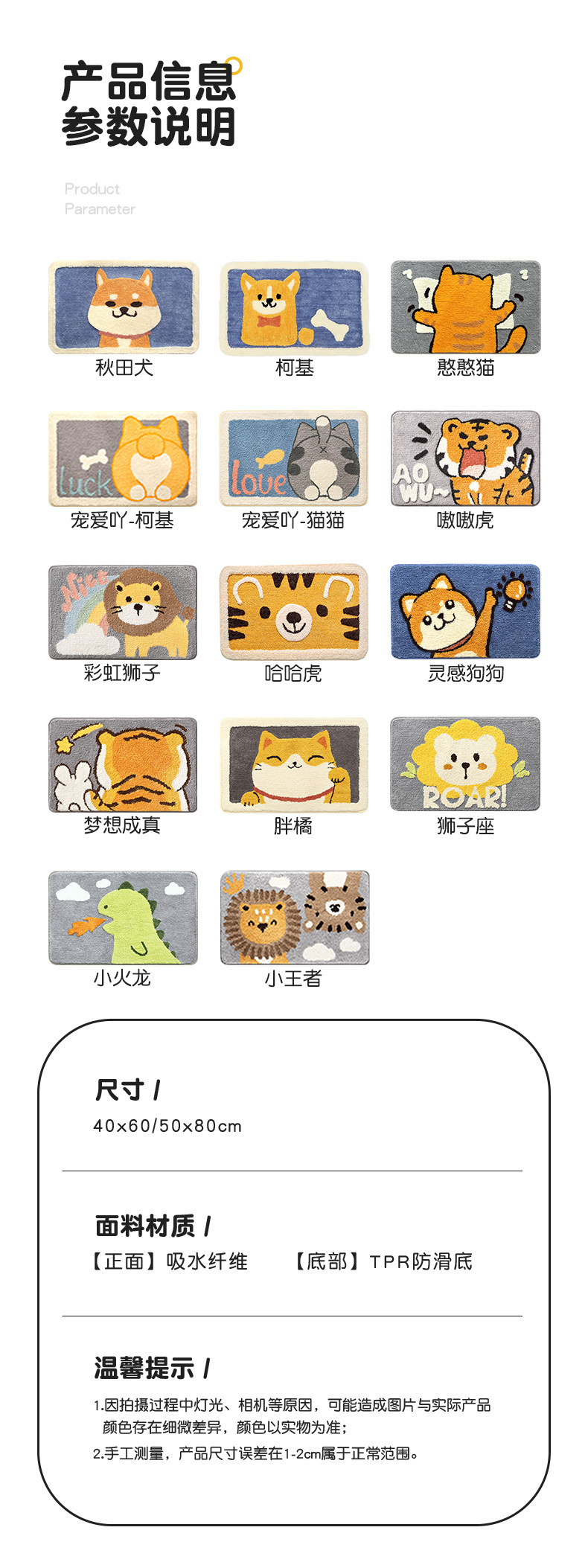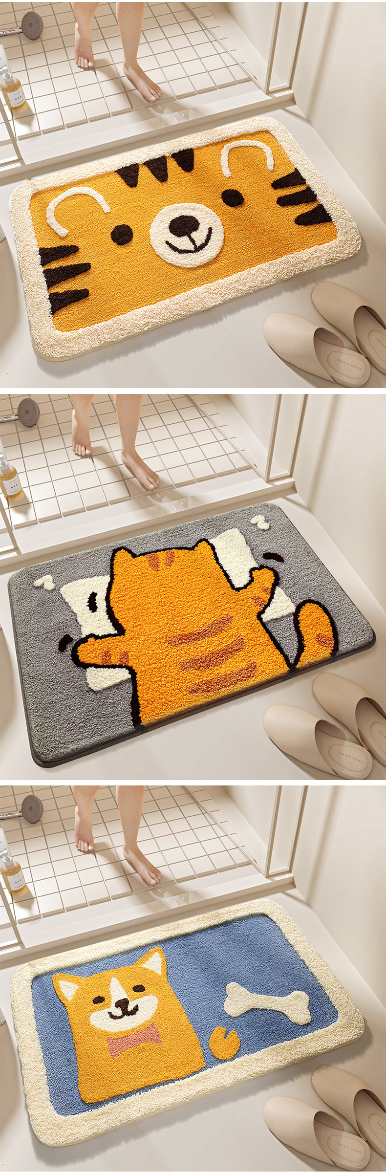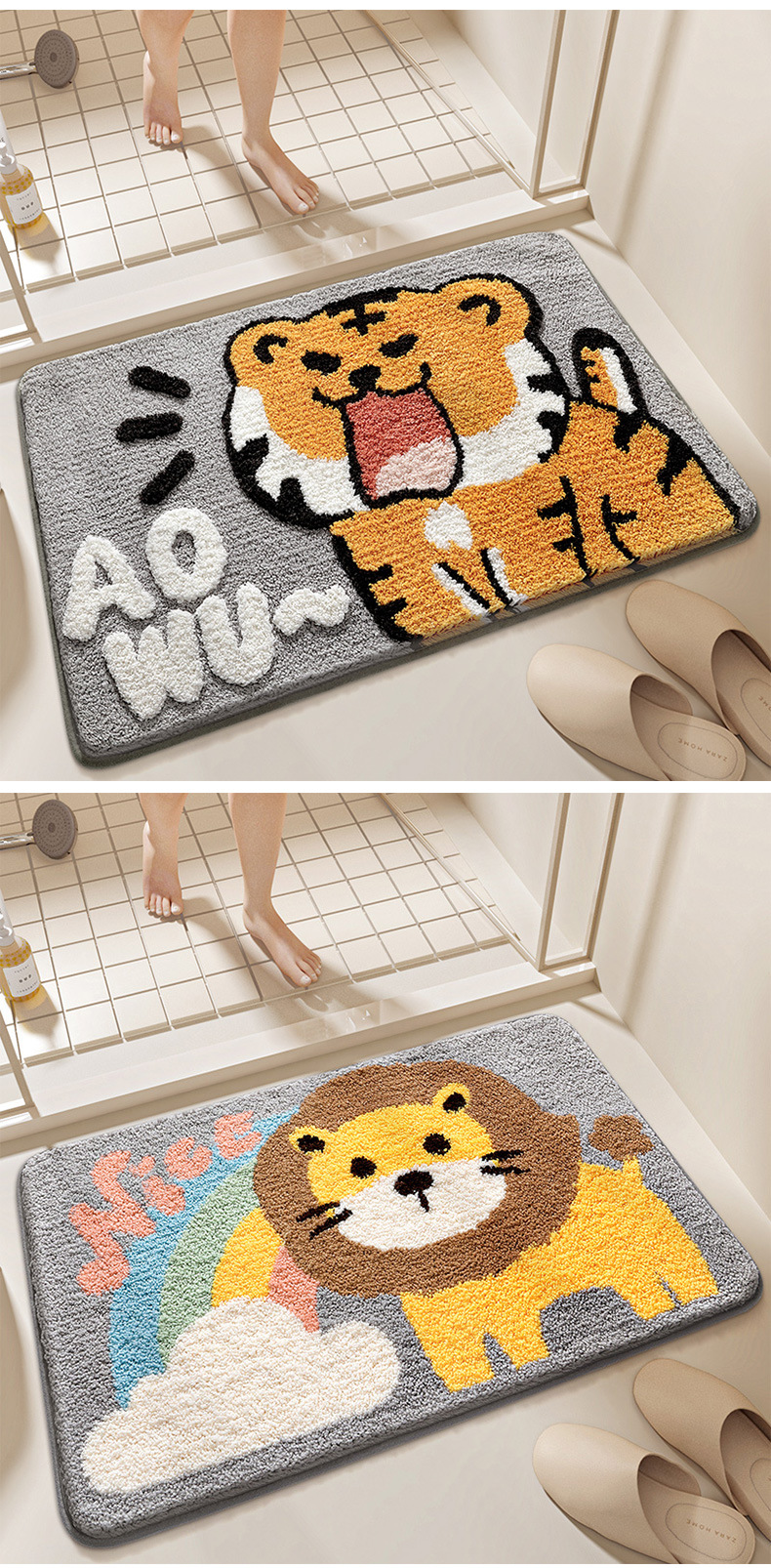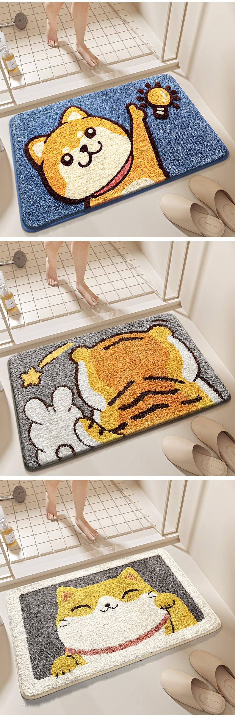 다장 만화 동물 잠금 카펫 바닥 매트 가정용 화장실 문 욕실 미끄럼 방지 매트 흡수성 발 매트
