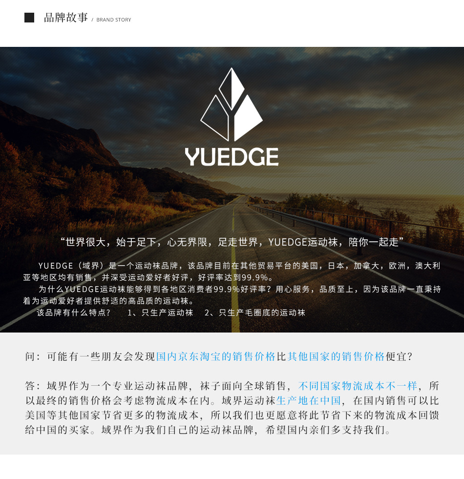 YUEDGE(域界)专注于运动袜的品牌,高品质、高质量的严格要求。