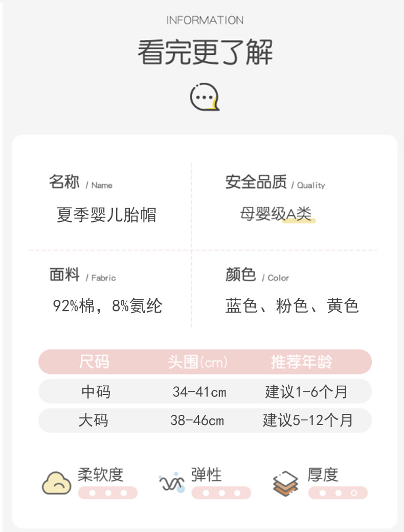 아기 모자 여름 얇은 신생아 할로겐 문 태아 모자 통기성 신생아 아기 빈 탑 멋진 모자 도매스토어 가기