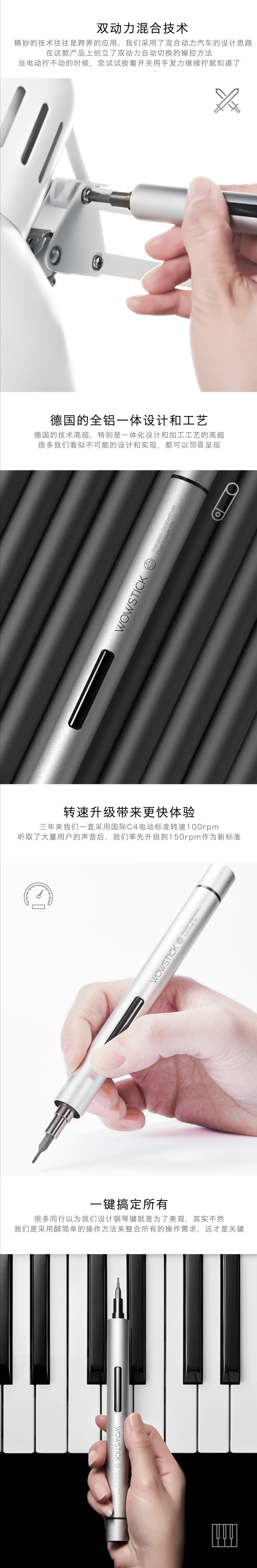 设计初衷:设计一款便携式小巧精密电动螺丝刀,可以拆卸平时的手机数码电子产品等等中小规格设备螺丝,因为这些设备螺丝本身很小。螺丝越小,承受力度是有限,如果速度过快,力度过大,很容易导致滑丝。所以传统的插电螺丝刀和手枪式的电动螺丝刀并不合适拆这些中小规格精密设备,力度过大,速度过快,很容易导致螺丝滑丝或者击穿电路主板。拆卸这些中小规格精密设备,安全更重要,而且这款是转速是1分钟/150转速,个人DIY的效率也是足够用。而且这款尺寸设计非常便携,握持感非常舒适顺手,可操作性很强,随身携带也是非常方便。