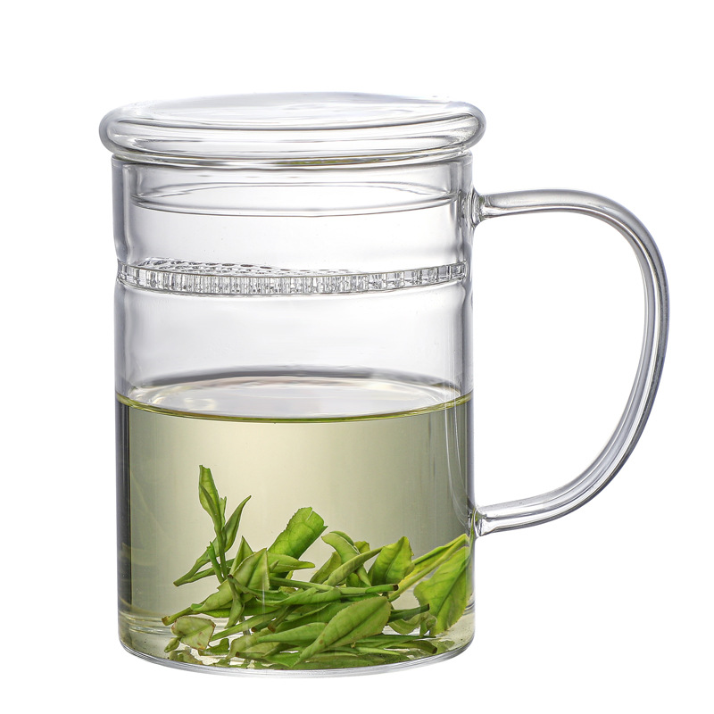 공장 도매 유리 초승달 컵 가정용 녹차 컵 필터 내열 유리 컵 포함