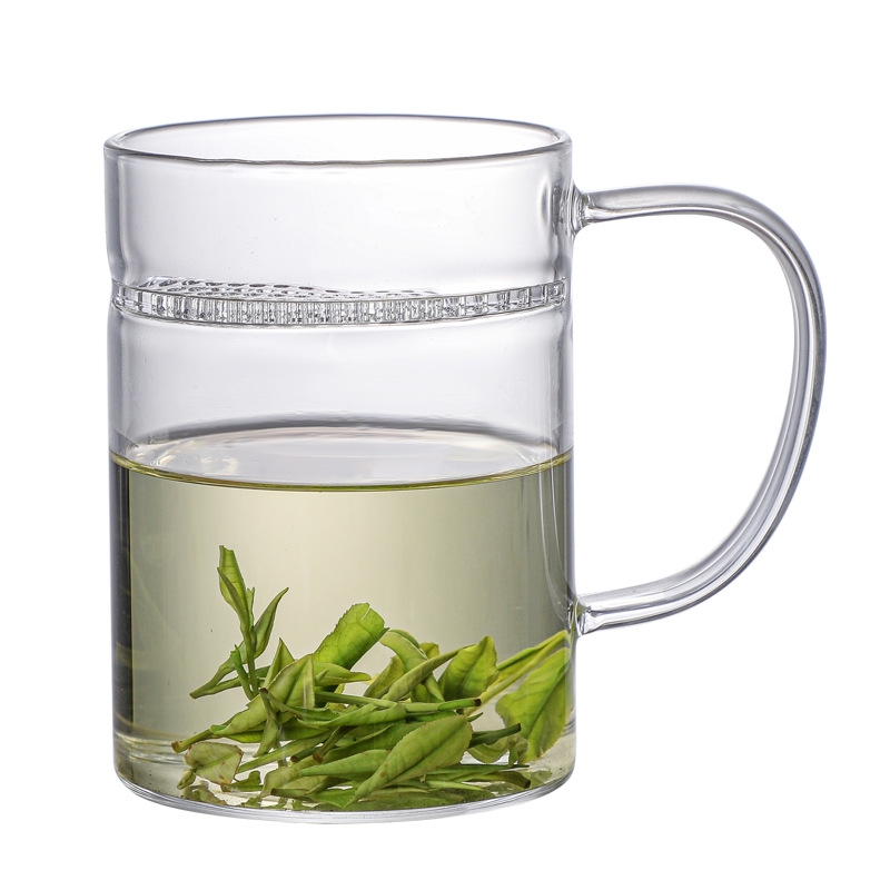 공장 도매 유리 초승달 컵 가정용 녹차 컵 필터 내열 유리 컵 포함스토어 가기