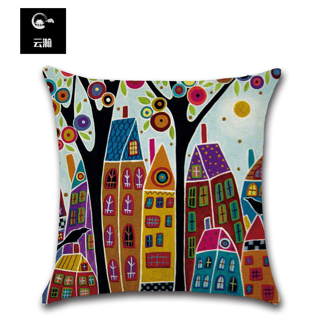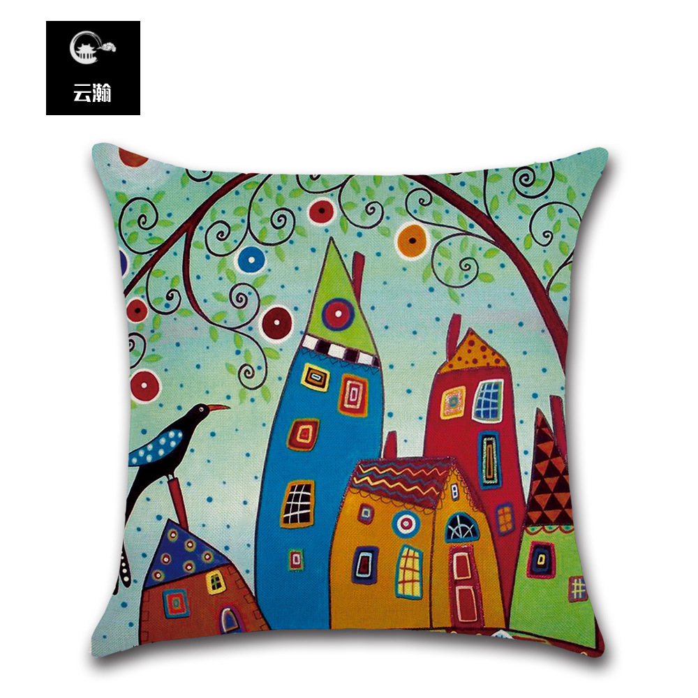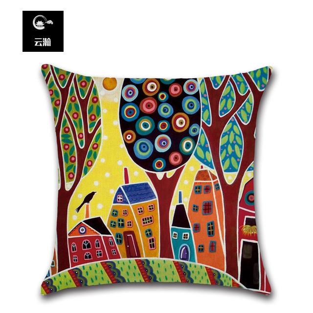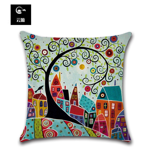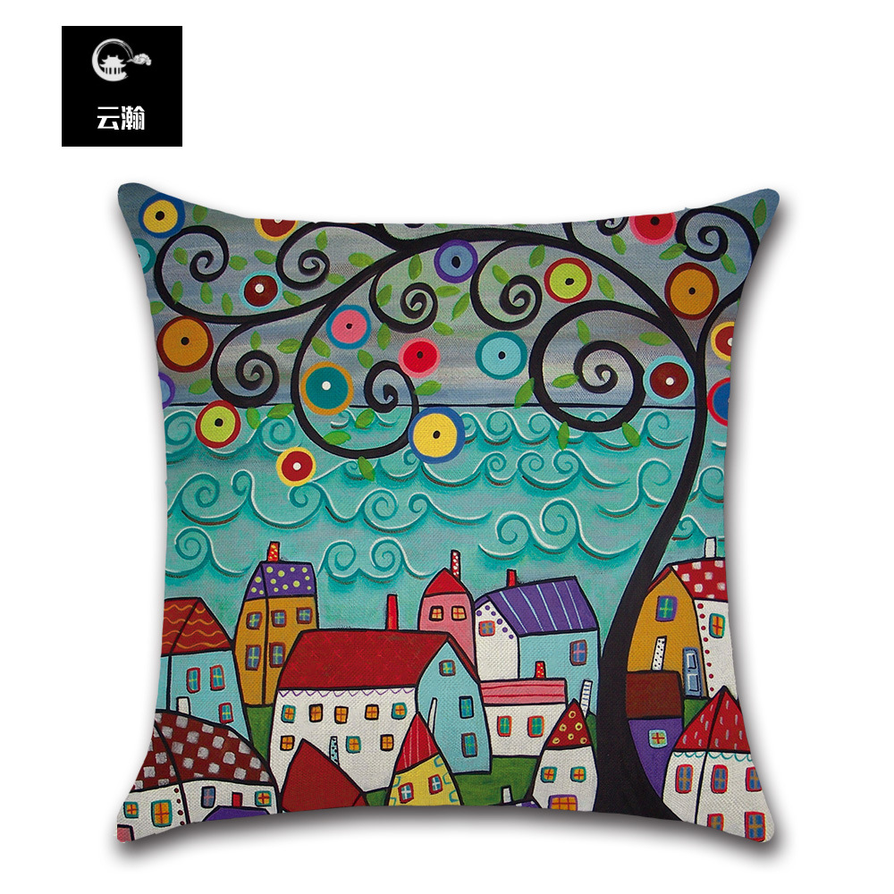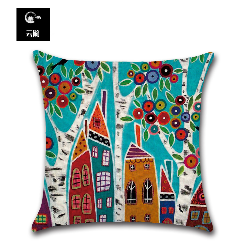 추상 하우스 트리 린넨 소파 장식 베개 케이스 베이 창 장식 베개 케이스 크로스 보더 핫 베개스토어 가기