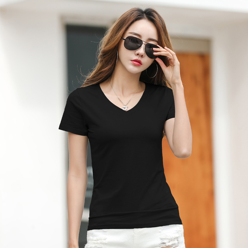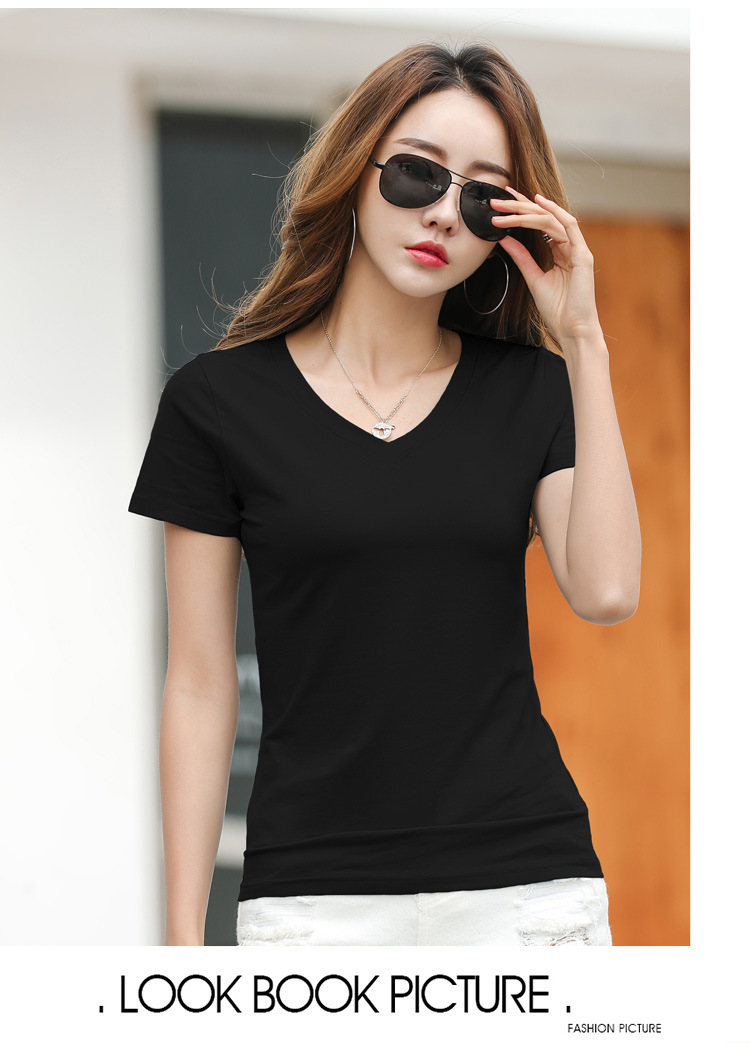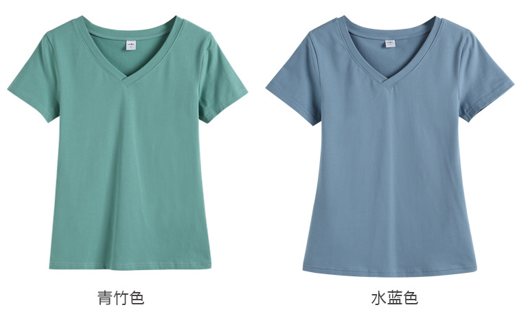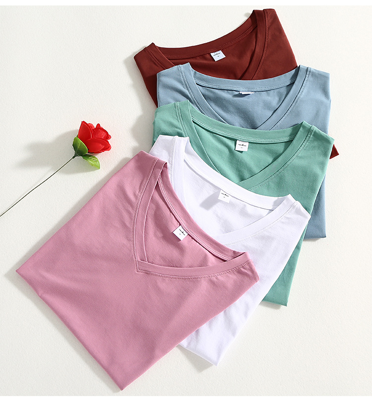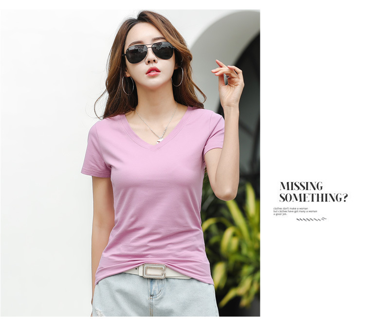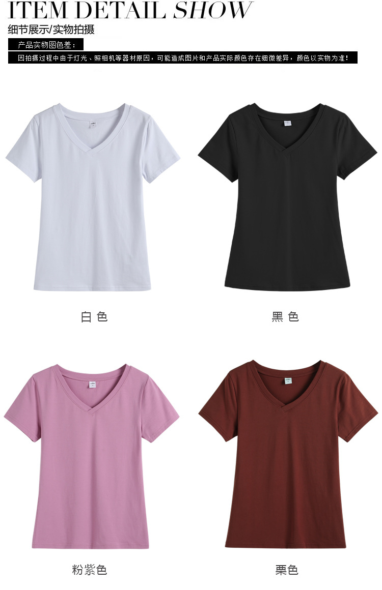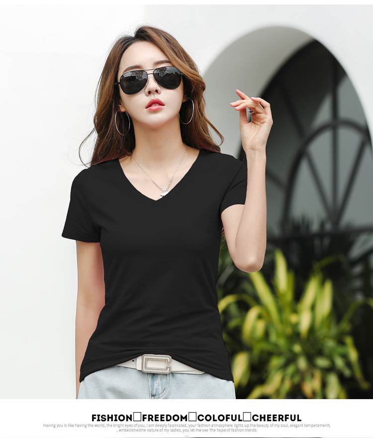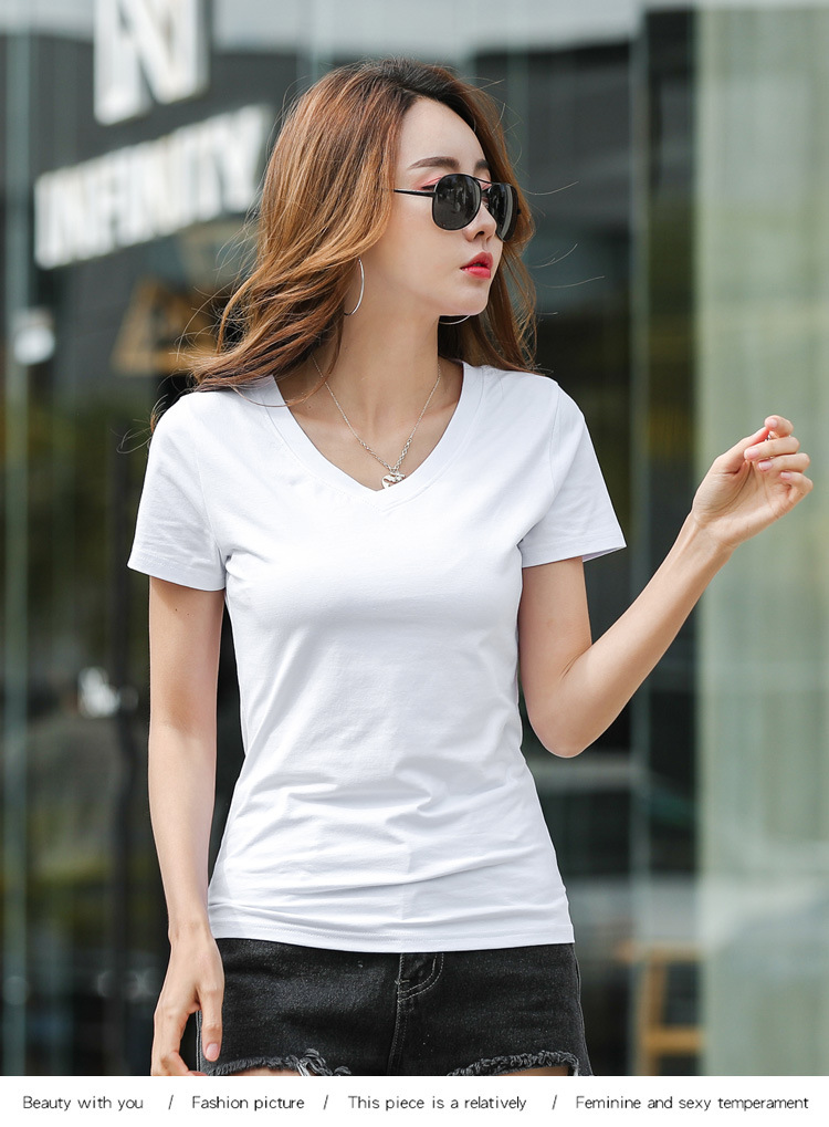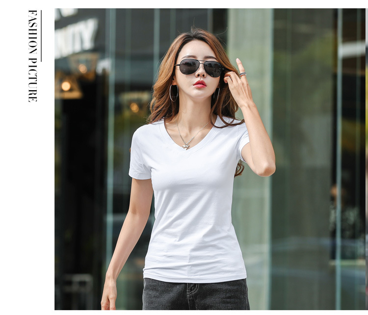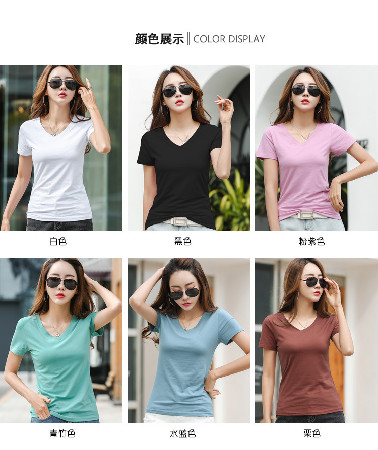 2025 여름 반팔 티셔츠 여성용 신상 면 슬림핏 한국 스타일 심플 단색 브이넥 이너웨어스토어 가기
