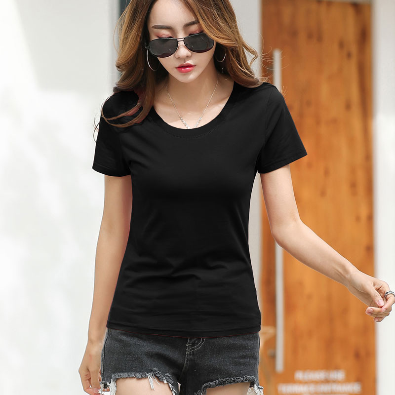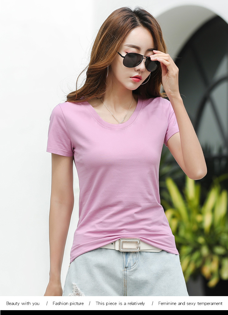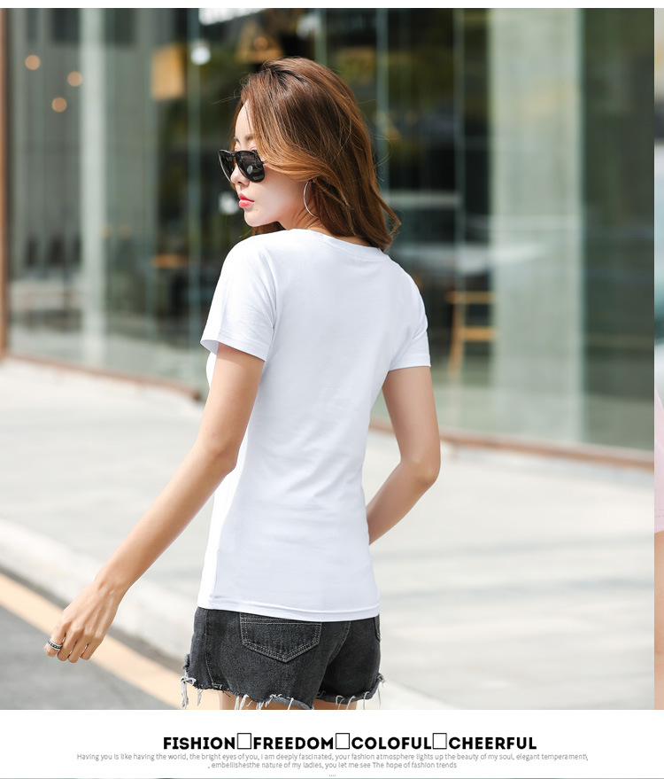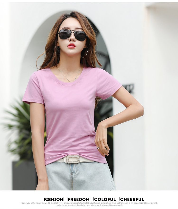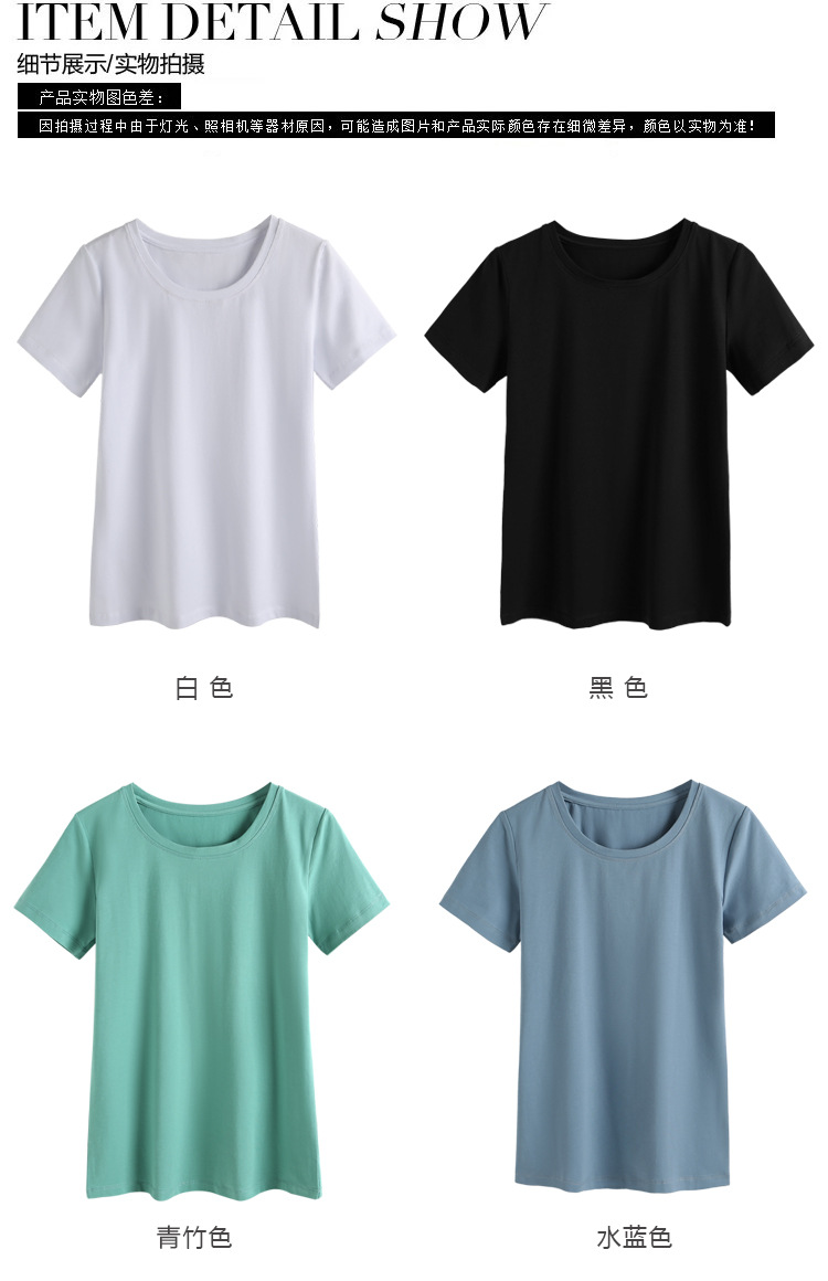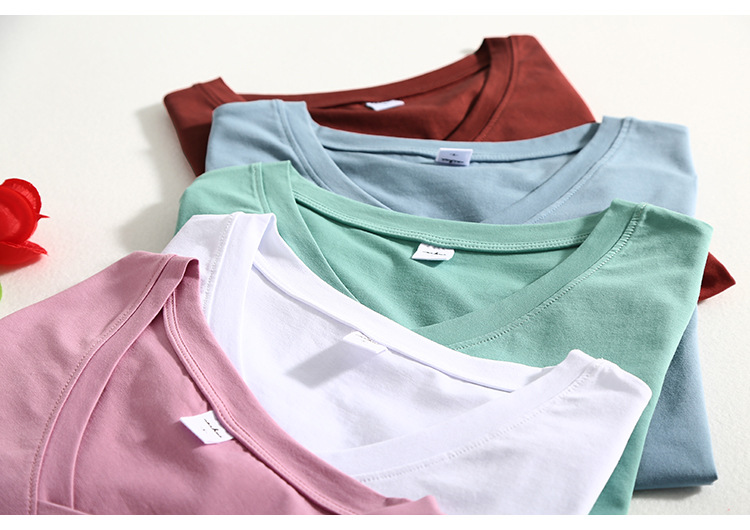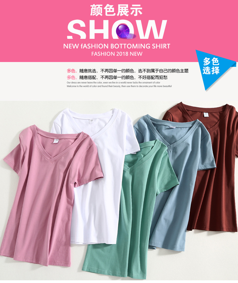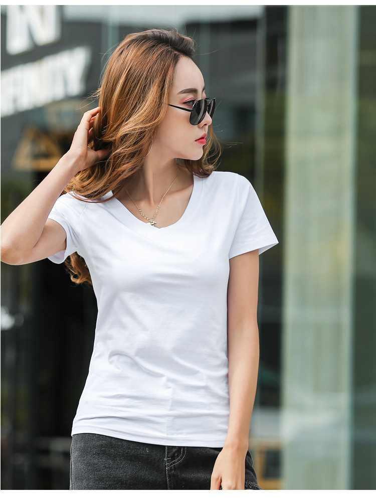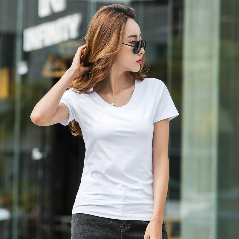 2025 여름 반팔 티셔츠 여성용 신상 면 슬림핏 한국 스타일 심플 단색 브이넥 이너웨어스토어 가기