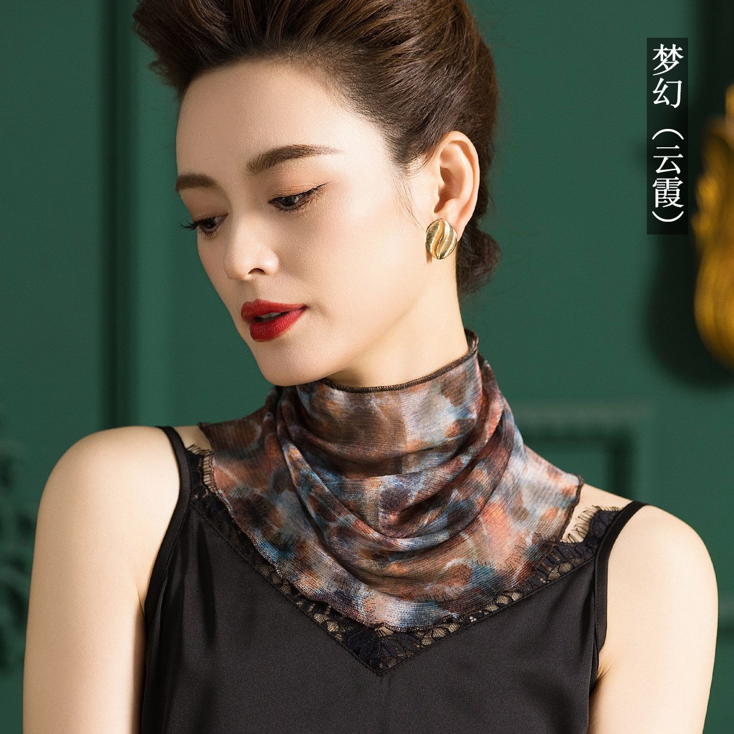 드롭 배송 메쉬 실크 스카프 100% 뽕나무 실크 인쇄 실크 스카프 여성 태양 보호 목 스카프 얇은 주름 1002스토어 가기