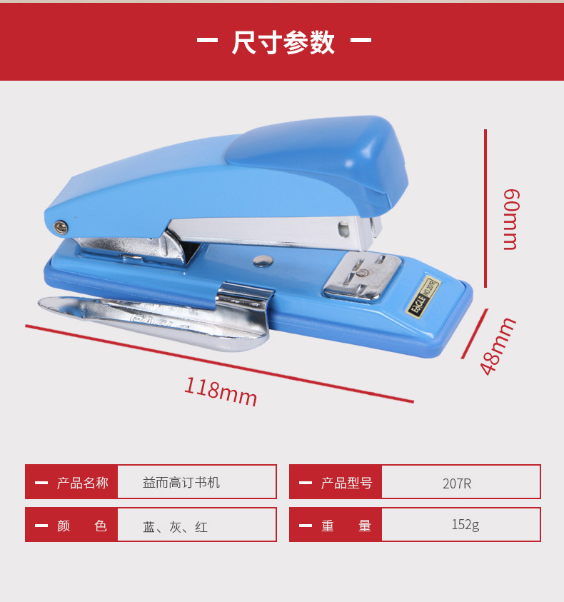 益而高文具207R订书器 24/6标准办公学生财务单据带起钉器订书机