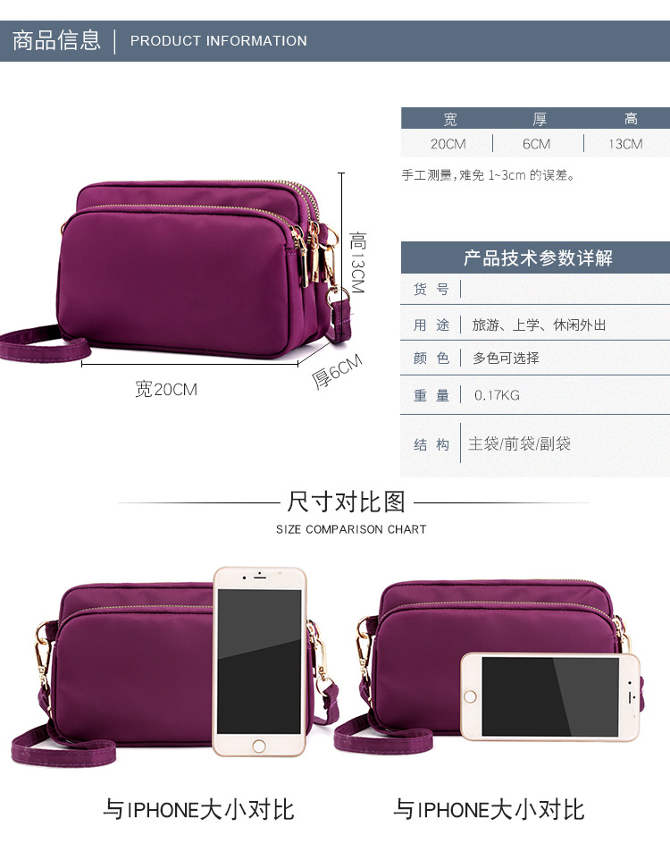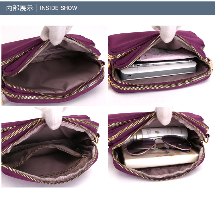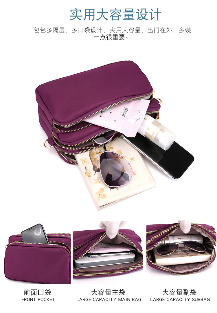 나일론 캐주얼 어깨 가방 여성의 새로운 작은 휴대용 간단한 크로스 바디 백 야외 통근 다층 중년 여성 가방스토어 가기