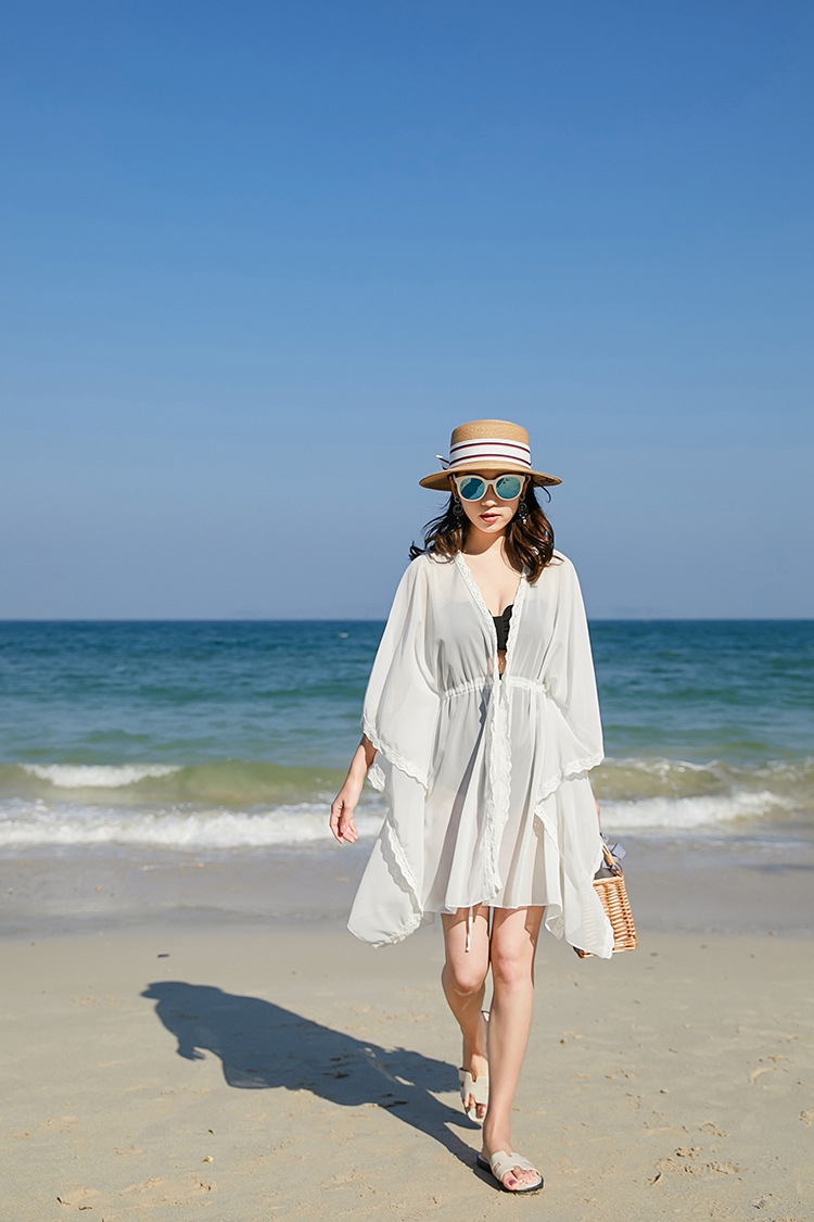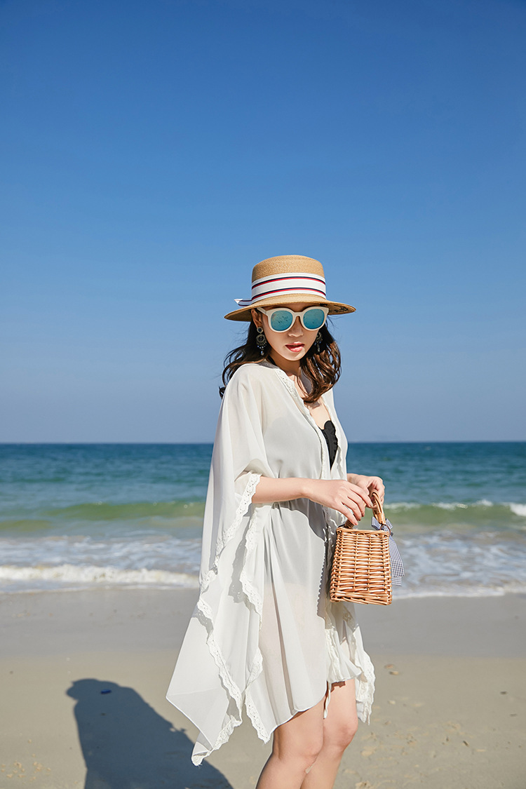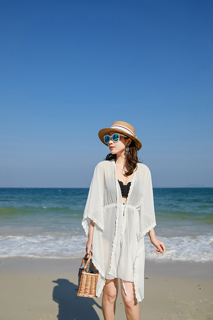 해변 휴가 레이스 카디건 비치 바깥 라이딩 쉬폰 자외선 차단제 블라우스 느슨한 에어컨 숄 여성 여름 코트