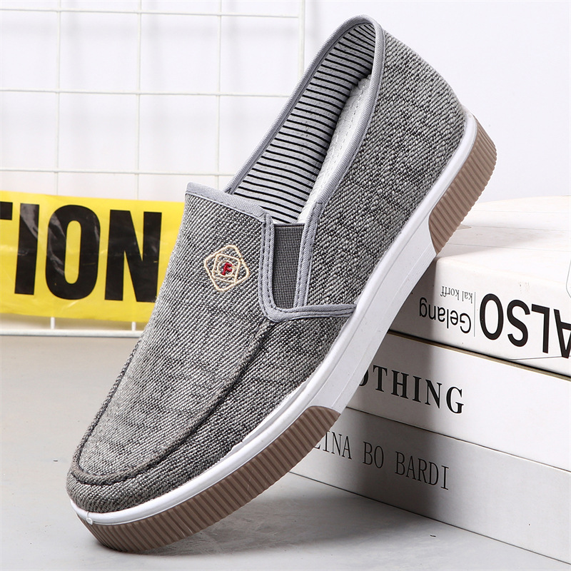 [화물 포함 소매] 신형 한국식 슬립온 데님 린넨 스포츠 캐주얼 남성 캔버스 스니커즈