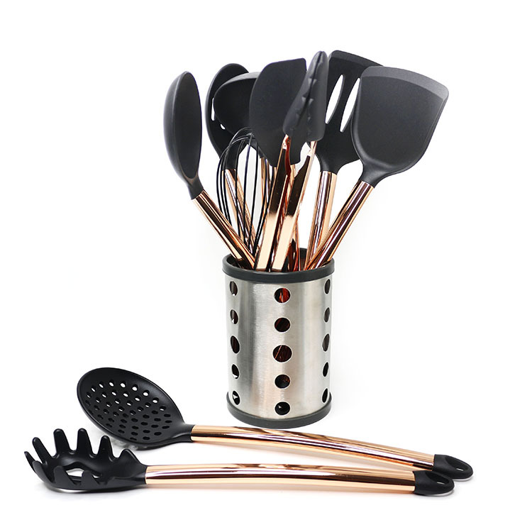 구리 도금 튜브 손잡이 실리콘 주방 용품 10 피스 요리 삽 숟가락 주방 도구 세트 공장 도매스토어 가기