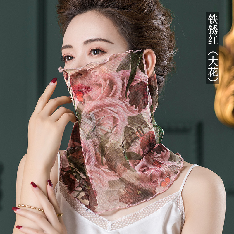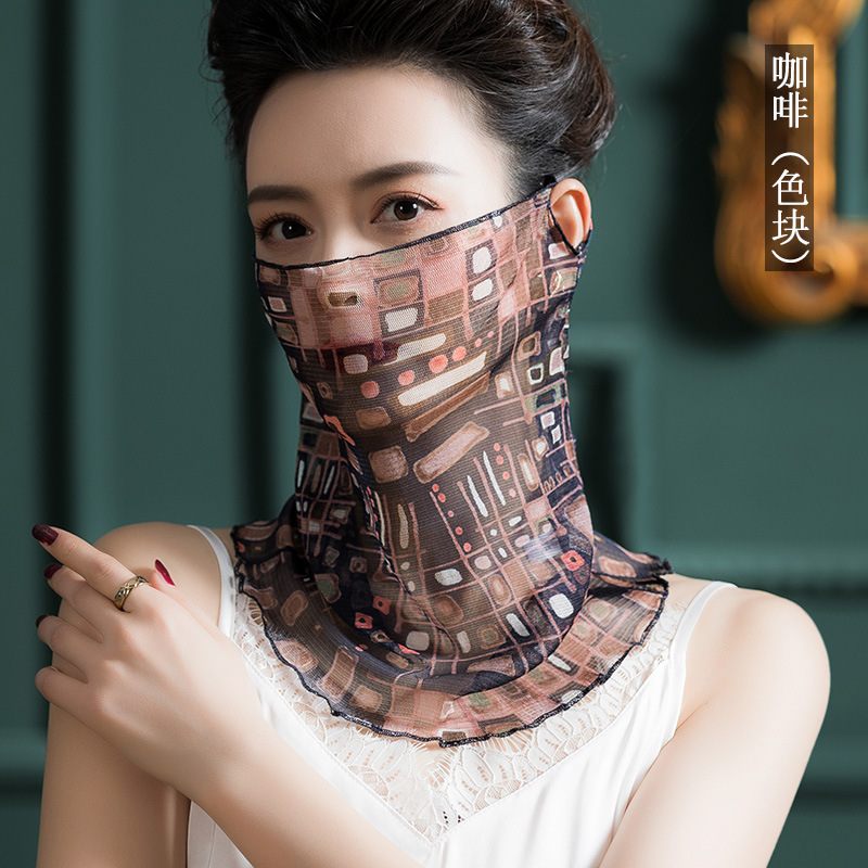 큰 공장 직공급 메쉬 실크 스카프 터틀넥 여성 100% 뽕나무 실크 교수형 귀 실크 스카프 자외선 차단제 스카프 얇은 1009X스토어 가기