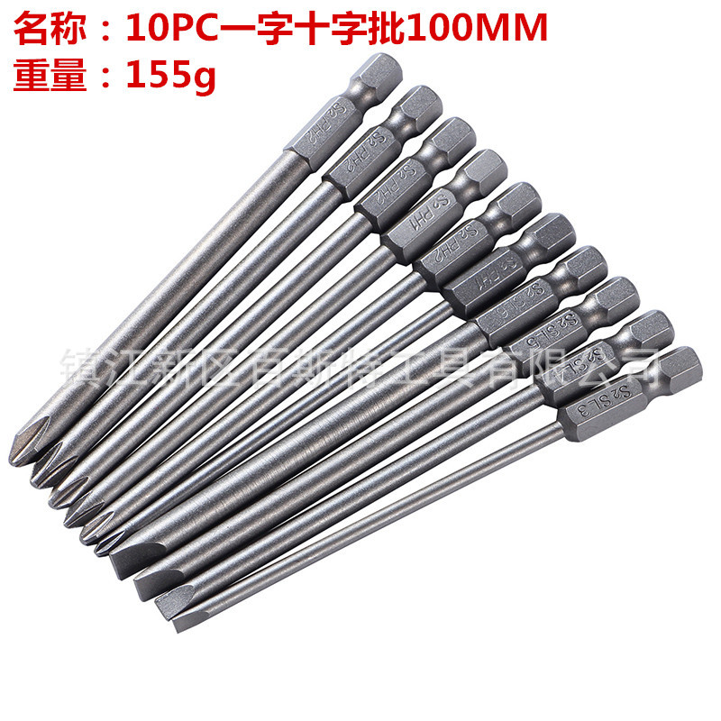 名称:10PC一字十字批头组合100mm长 --BST批头006