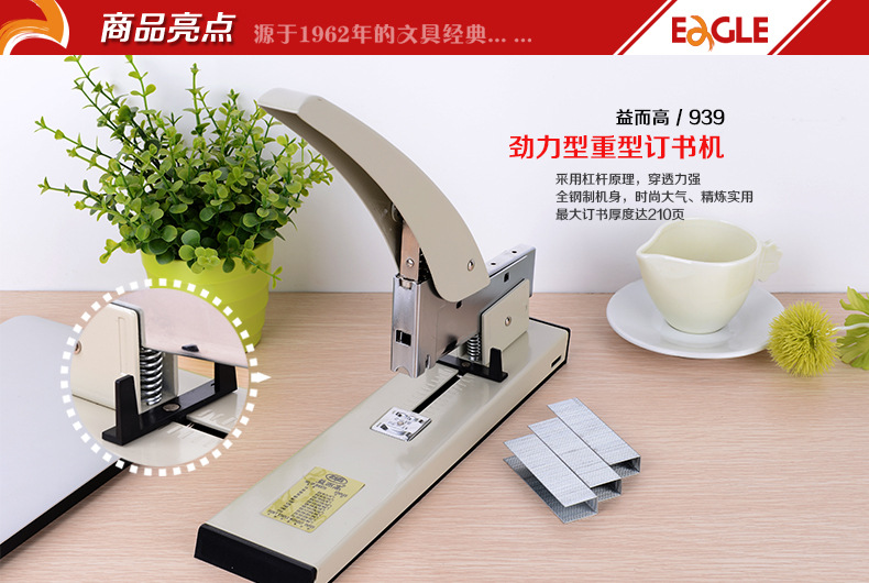 益而高文具大号省力订书器 办公财务档案专用厚层180页重型订书机