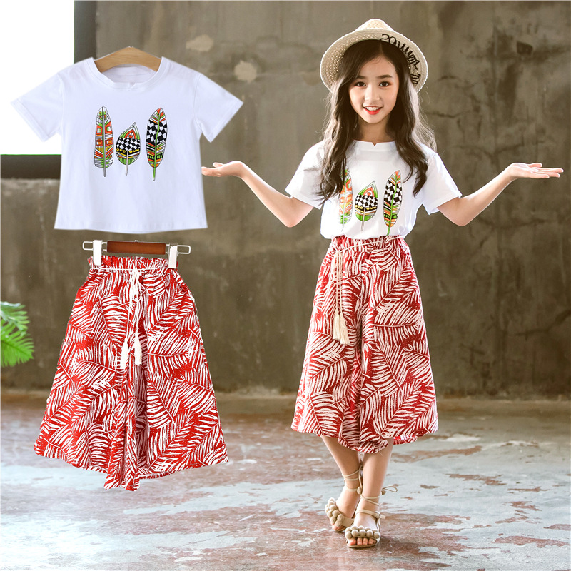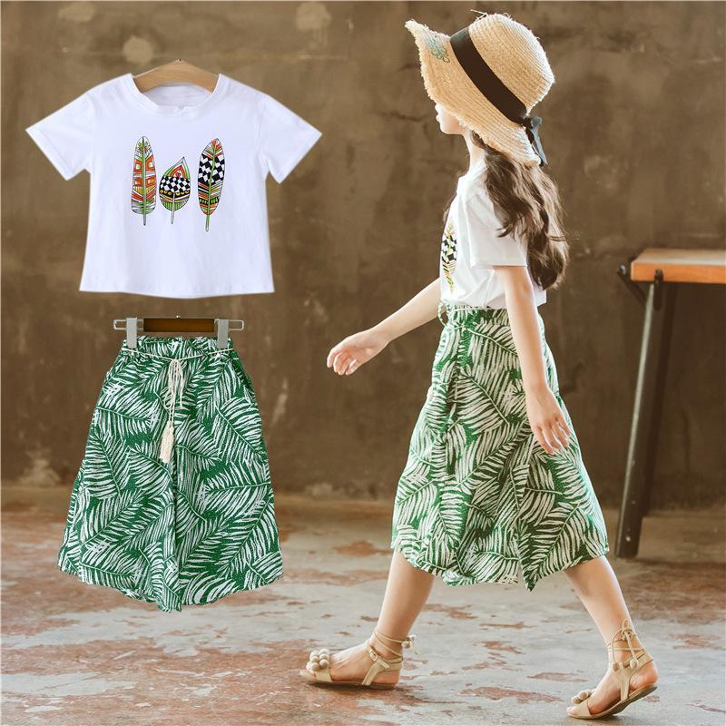 여아 정장 여름 옷 새로운 여름 한국 패션 여아 및 아동용 와이드 팬츠 투피스 세트 유행 아동복스토어 가기