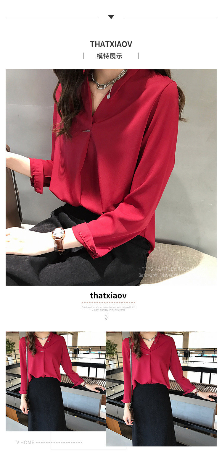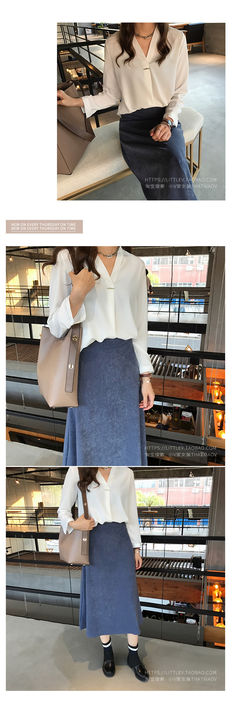 2025 새로운 부드러운 스타일 v 넥 셔츠 여성 긴팔 탑 한국 스타일 풀오버 셔츠 솔리드 컬러 바닥 셔츠 유행스토어 가기