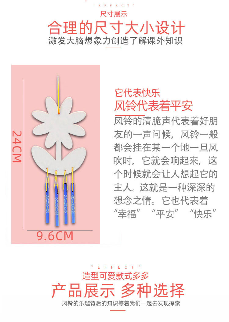 국경을 넘는 미완성 목재 풍차종 종아리바람 종소리 장식품 유치원 창의적인 색칠하기 낙서 DIY 어린이 수공예 재료 패키지 나비